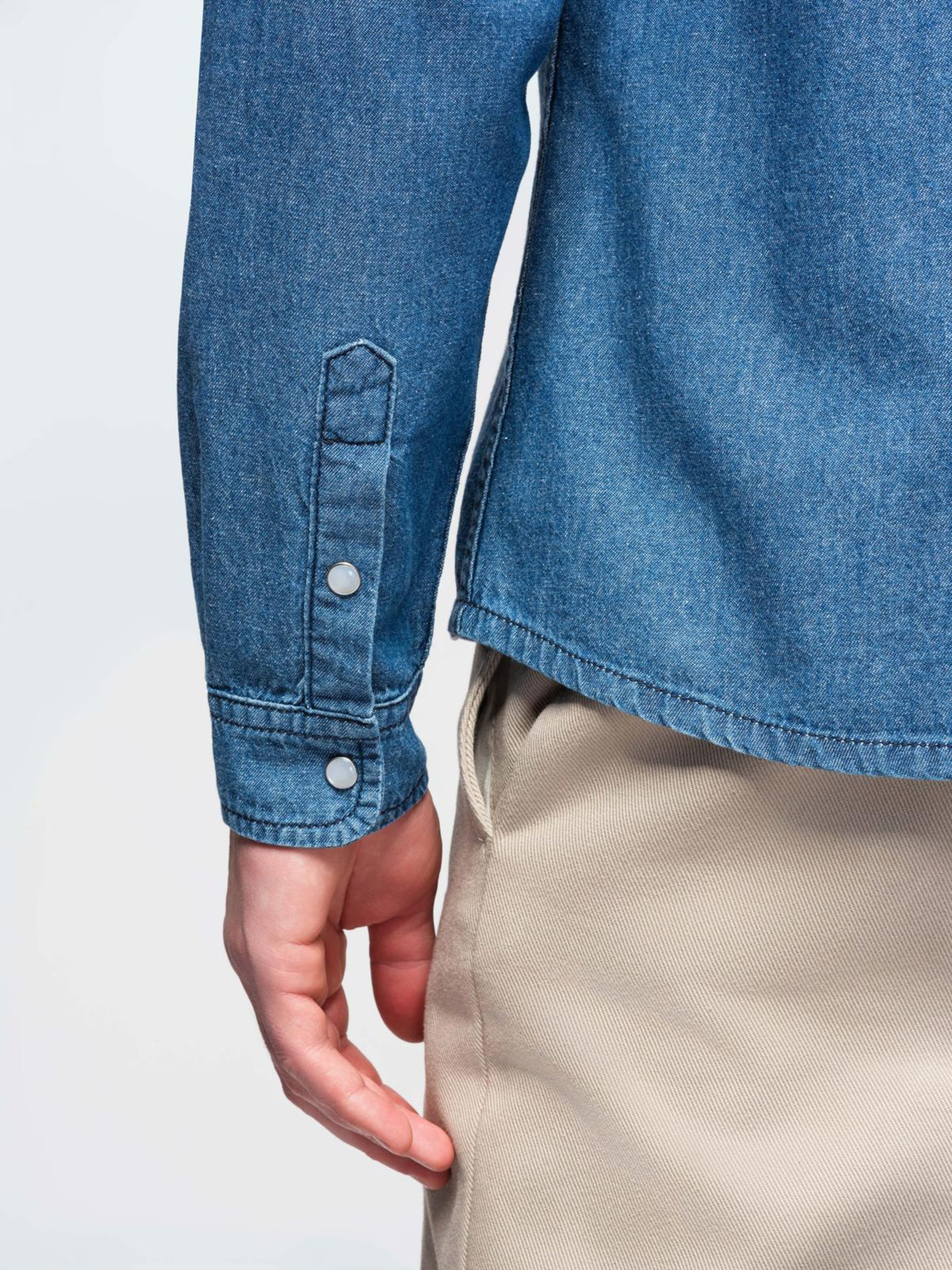 Pánska džínsová košeľa s vreckami na cvočky - svetlo modrá V1 OM-SHDS-0210 Ombre Clothing