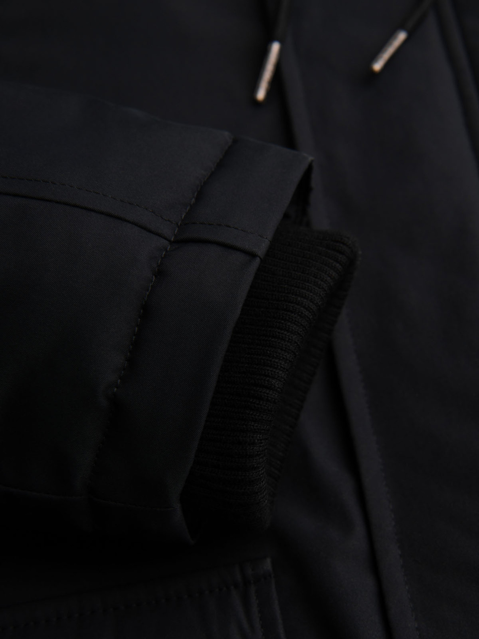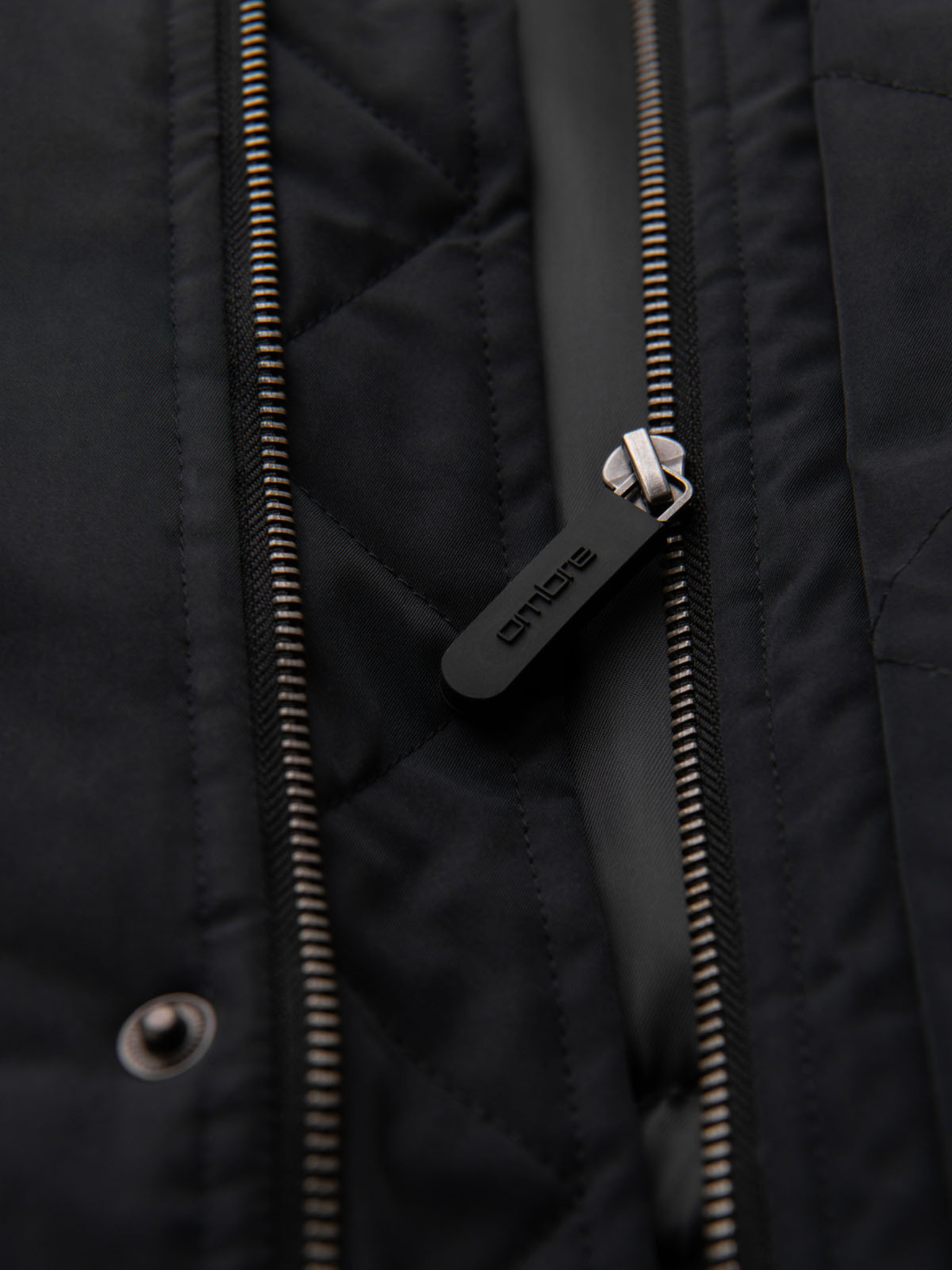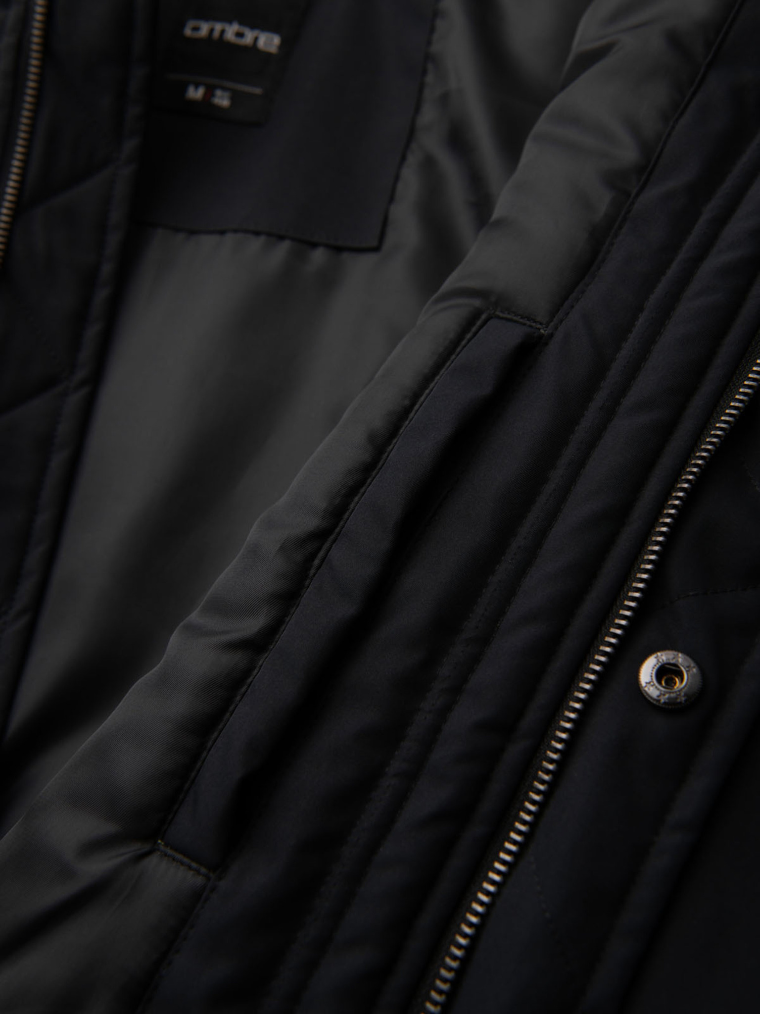 Pánsky kabát parka s fleecovou podšívkou a reguláciou v páse - čierny V2 OM-JAPJ-0314 Ombre Clothing