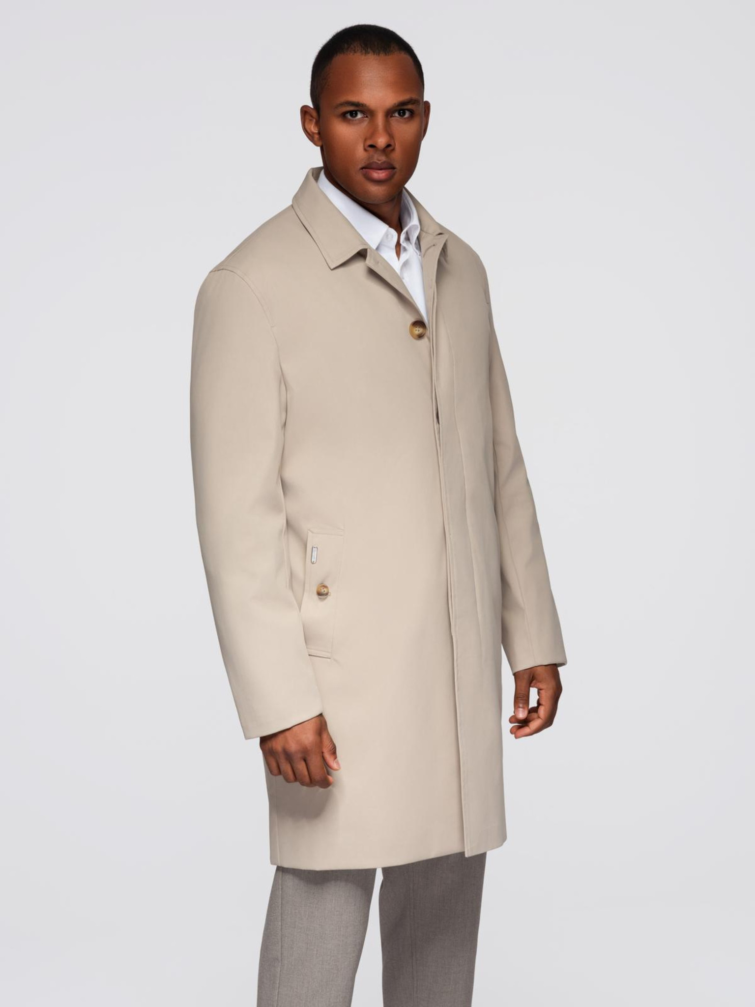 Pánský ľahký jednoradový kabát - béžový V7 OM-COWC-0104 Ombre Clothing