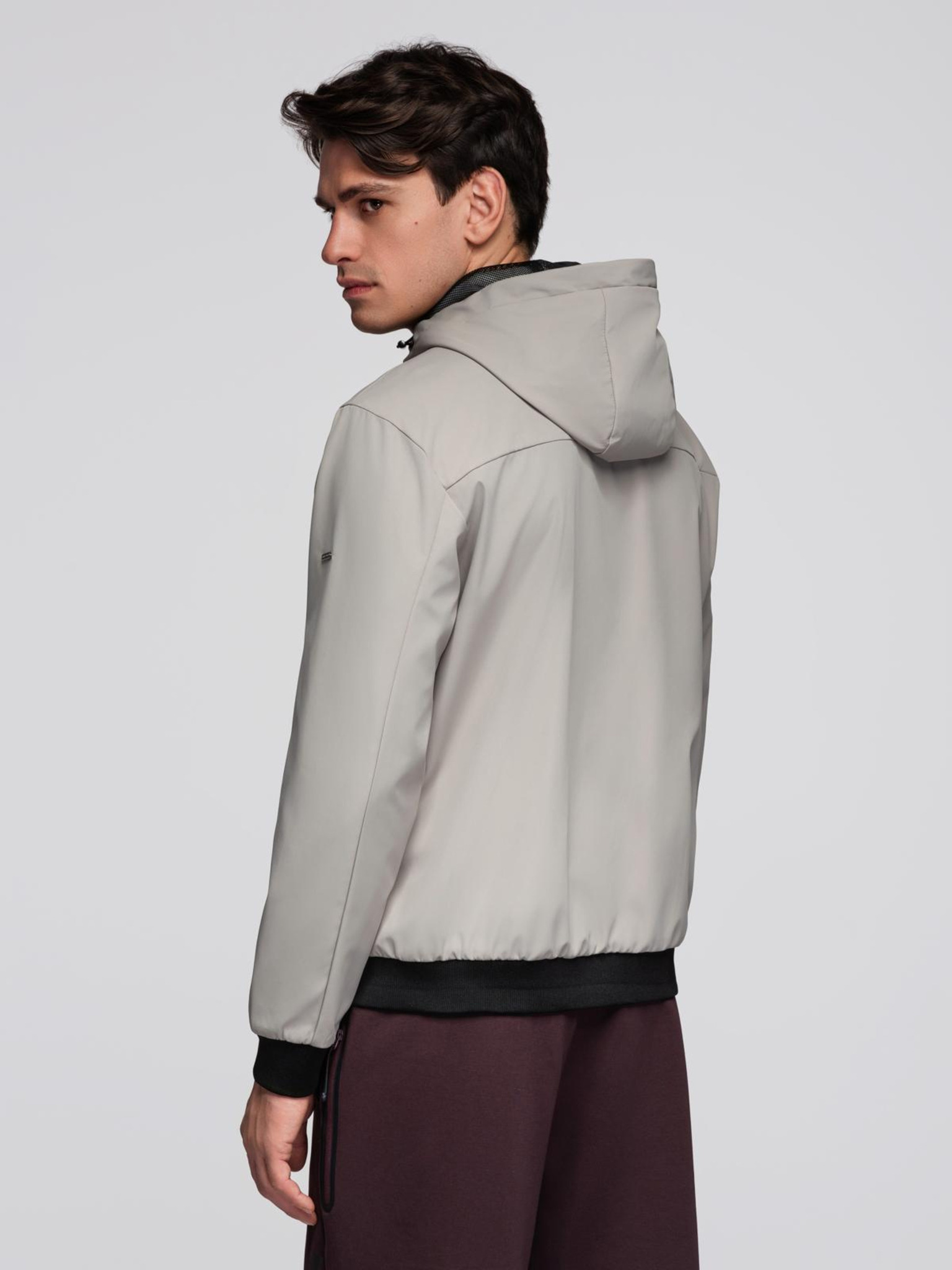 Pánska kontrastná vetrovka s kapucňou - olivovo sivá V3 OM-JANP-0228 Ombre Clothing