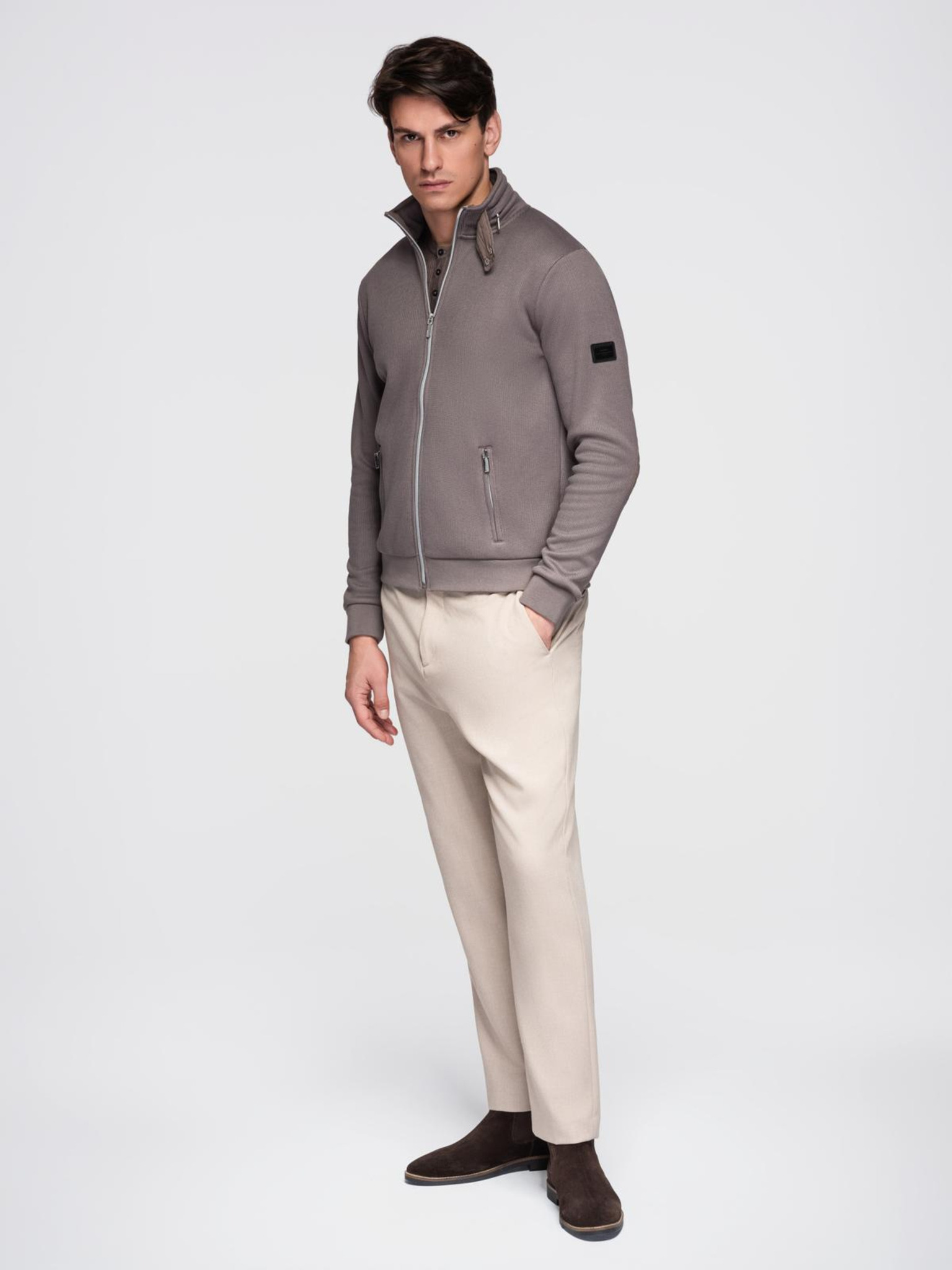 Pánska bunda s vreckami a golierom Ombre Clothing