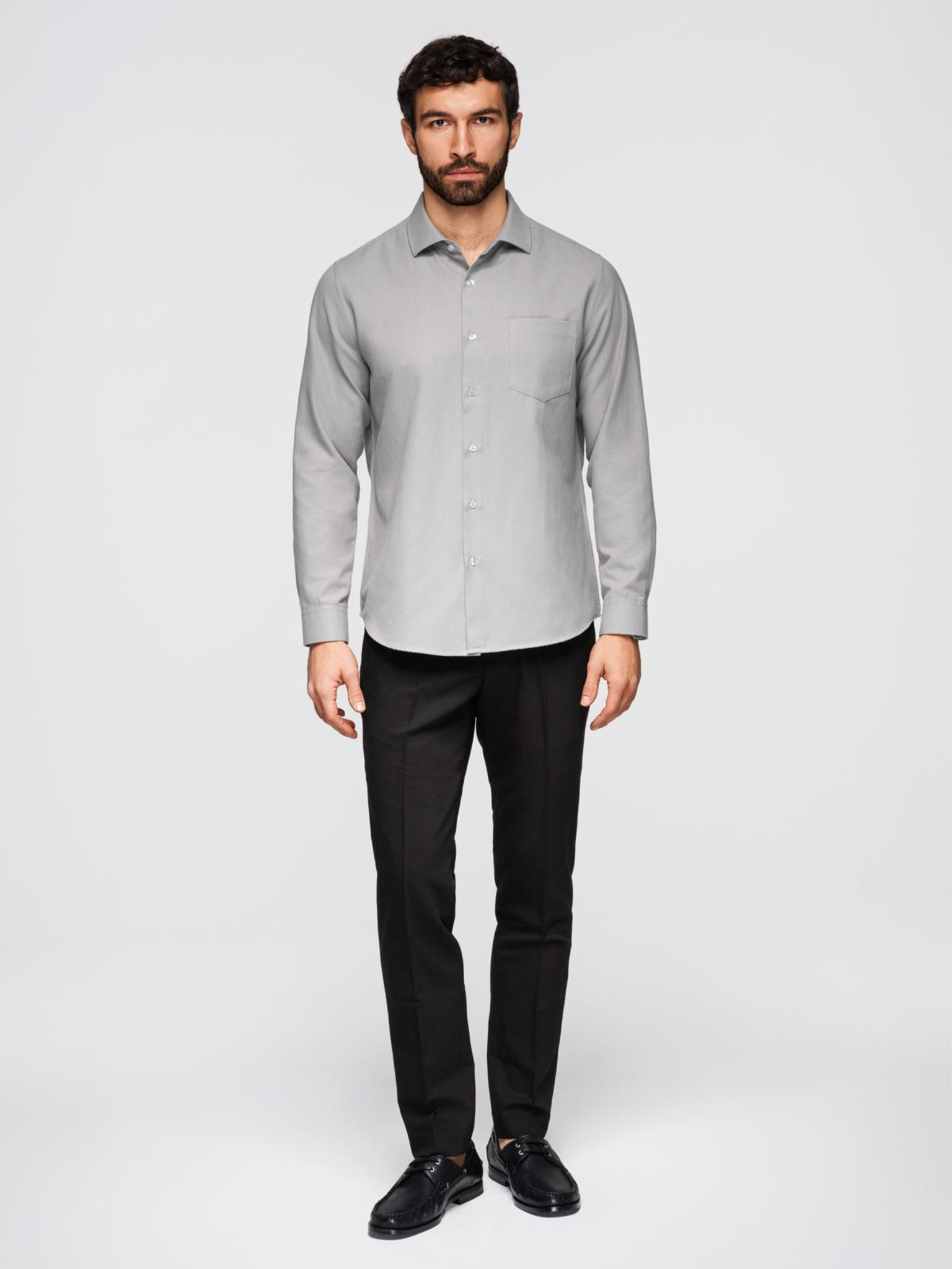 Pánska košeľa klasického regular fit strihu - sivá melanž V2 K694 Ombre Clothing