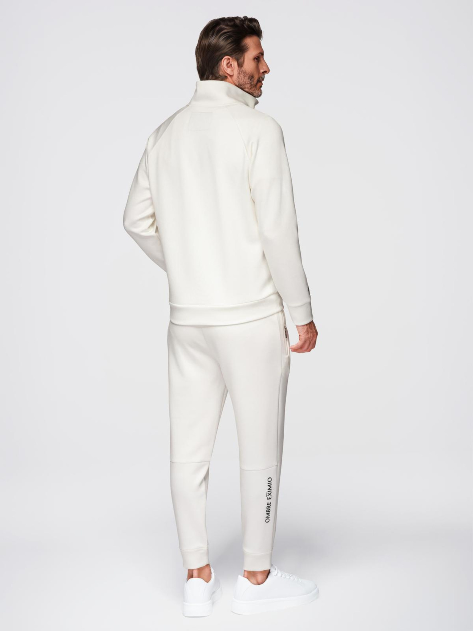 Pánska elastická mikina s lemovaním a vysokým golierom - krémová V2 OM-SSZP-0224 Ombre Clothing