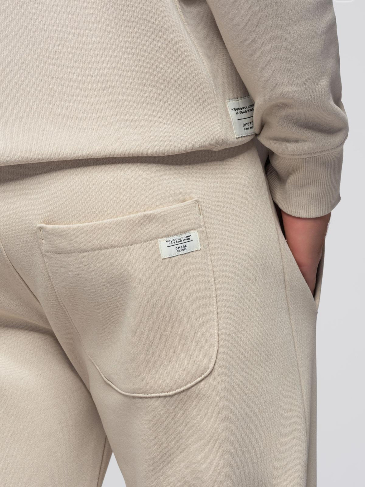 Pánska tepláková súprava mikina s golierom + nohavice jogger - ecru V2 Z117 Ombre Clothing