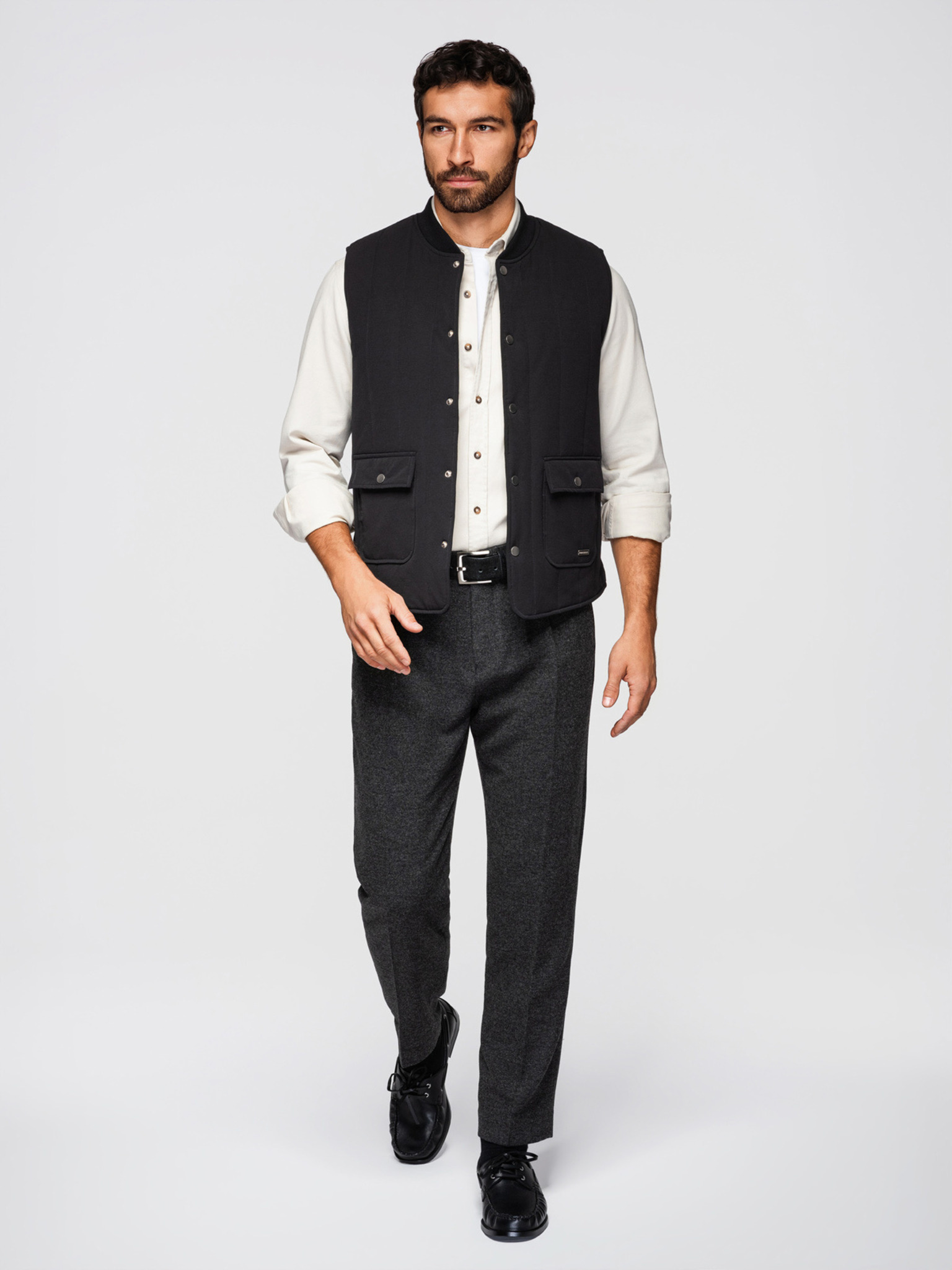 Pánska prešívaná elegantná vesta - grafitový melír V1 OM-JAVJ-0275 Ombre Clothing