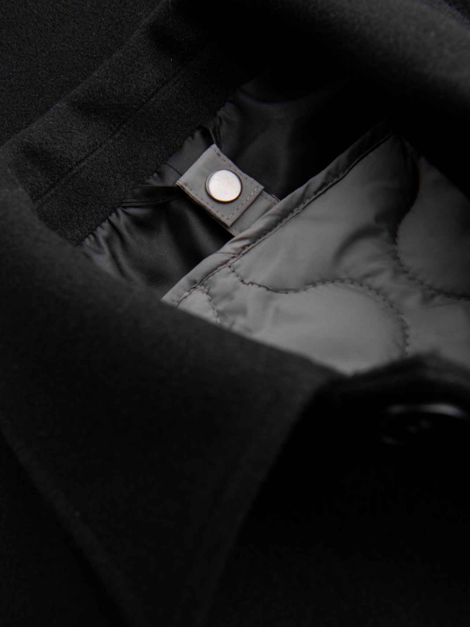 Pánsky vlnený kabát parka s kapucňou - čierny V1 OM-COWC-0132 Ombre Clothing