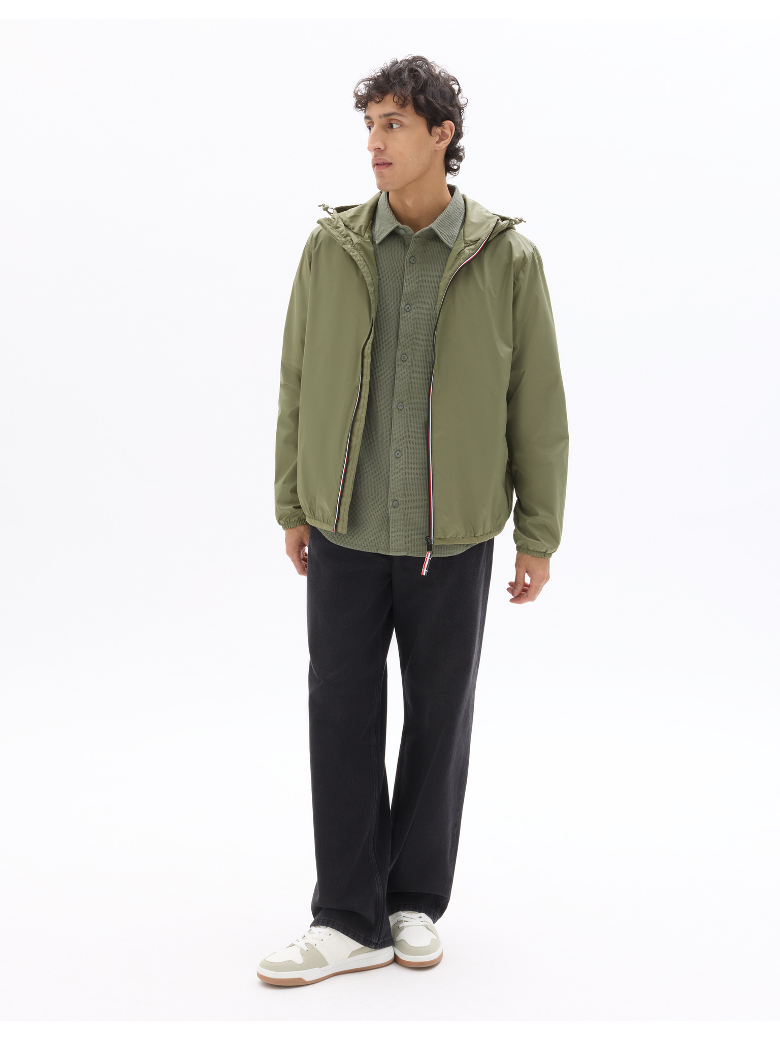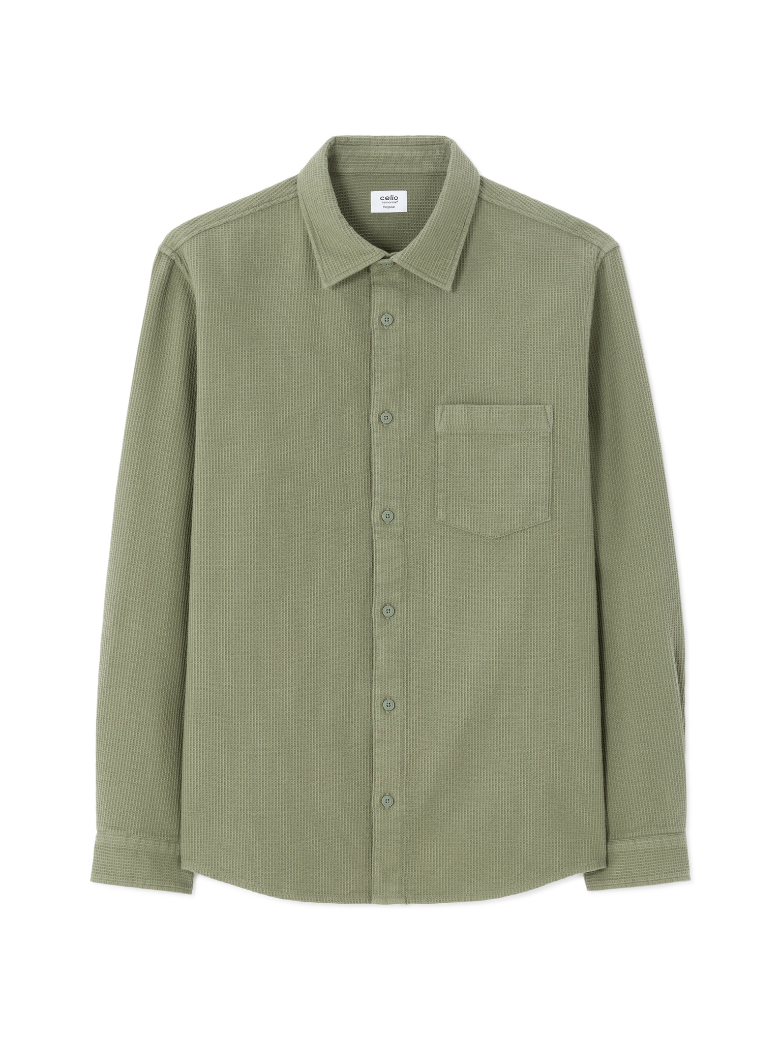 Pánska plátená košeľa so stojačikom a vreckom REGULAR FIT - khaki