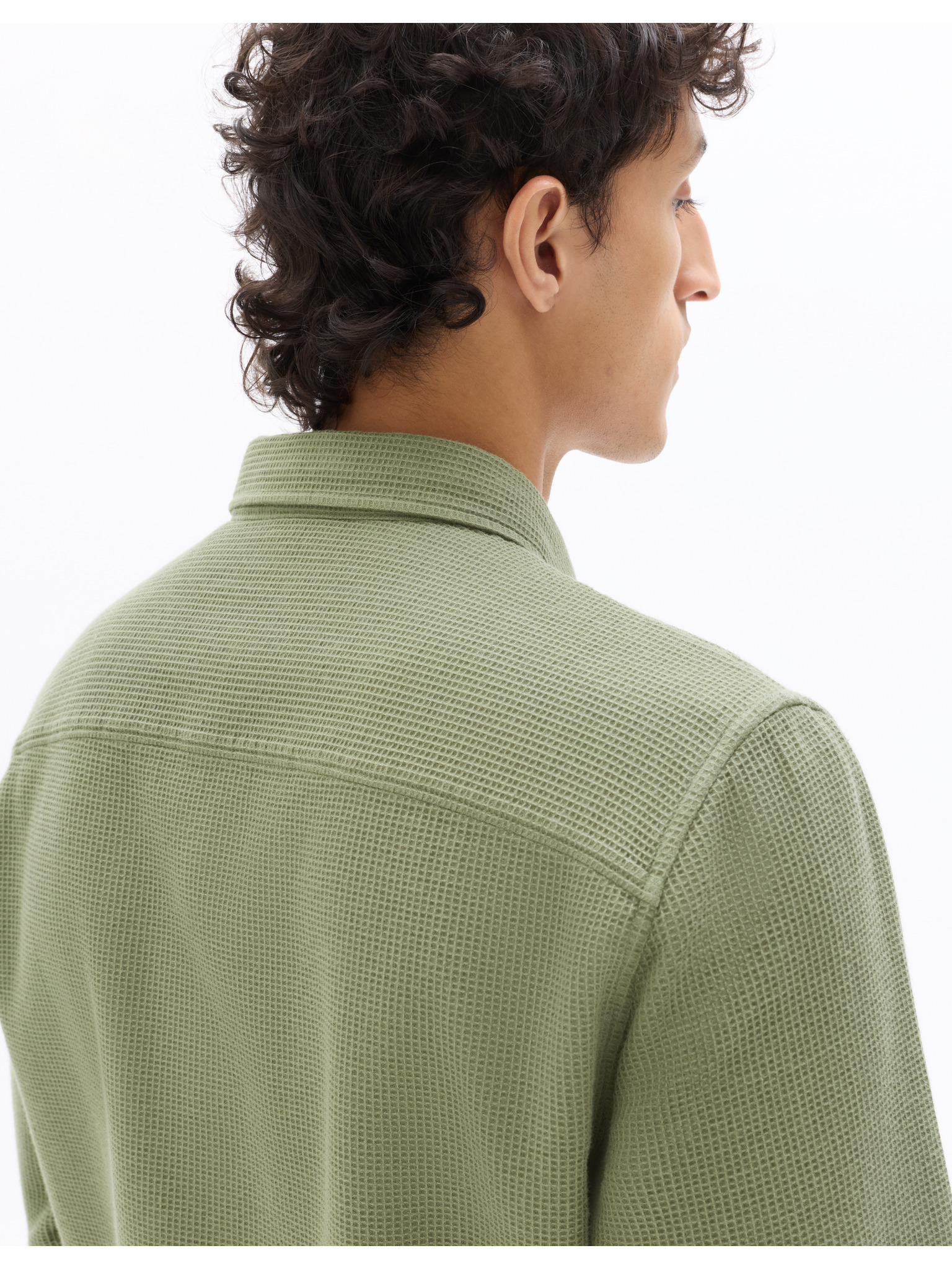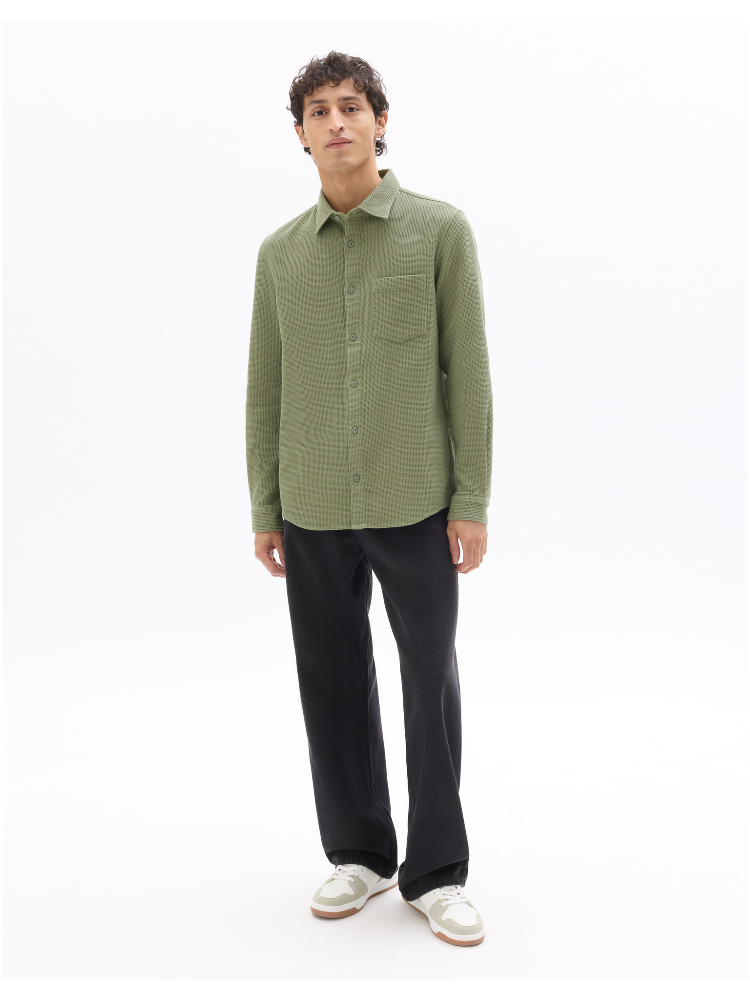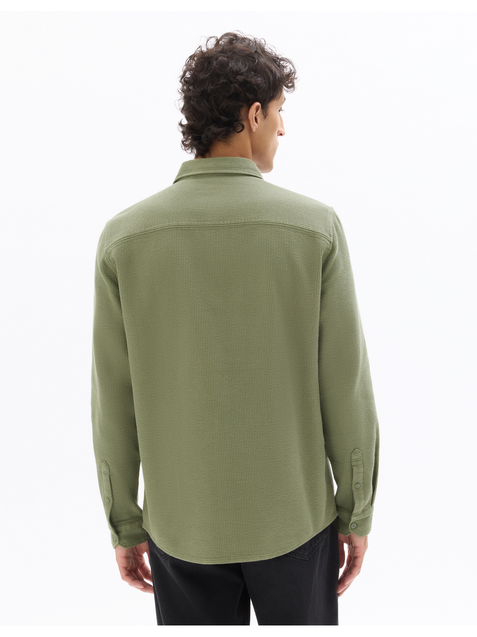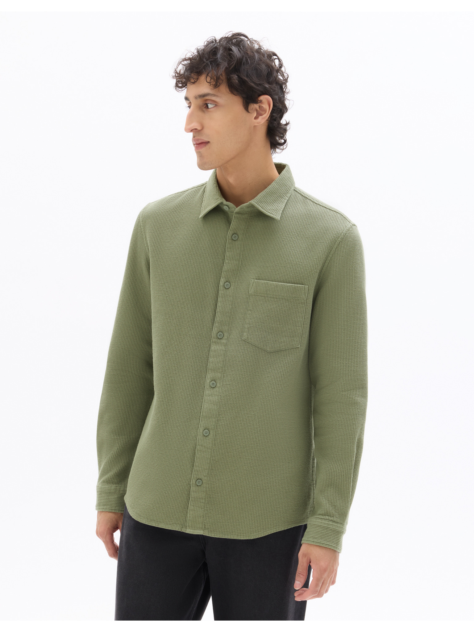 Pánska bavlnená košeľa s kapsou - olivová V2 K695 Ombre Clothing