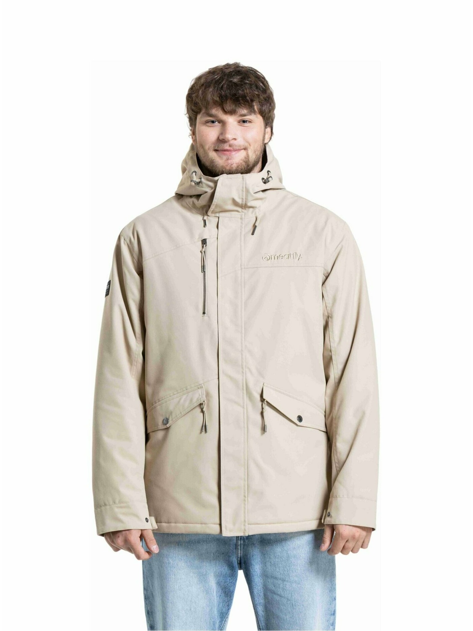Pánska bunda s vysokým golierom a kapucňou svetlohnedá Ombre Oblečenie