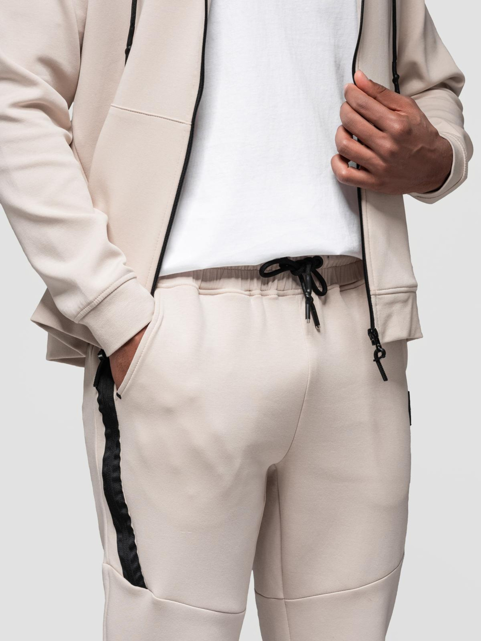 Pánska mikina s kapucňou na zips + nohavice jogger - béžová V4 Z118 Ombre Clothing
