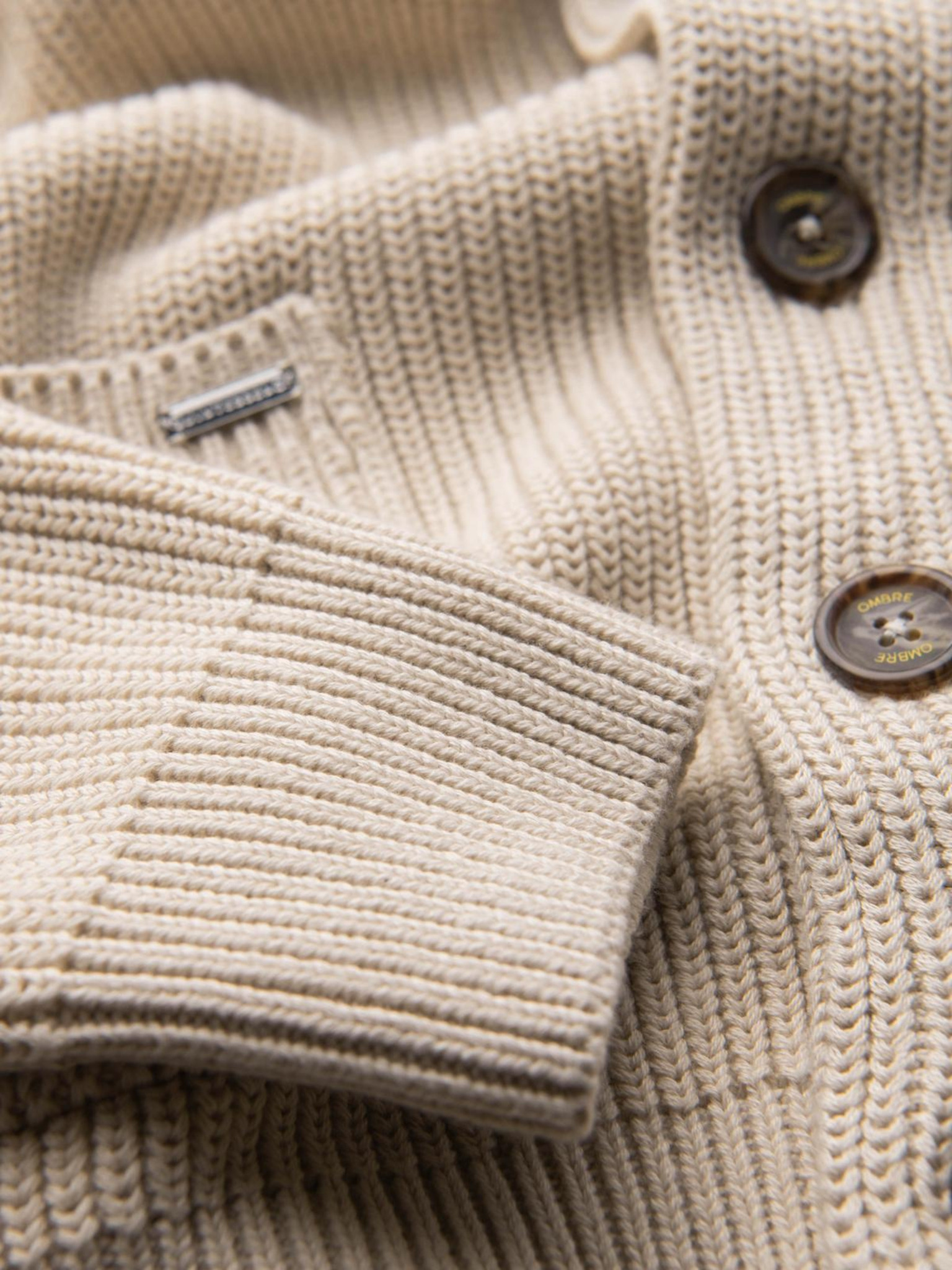 Pánsky sveter zo cik-cak úpletu - pieskový V1 OM-SWSW-0147 Ombre Clothing