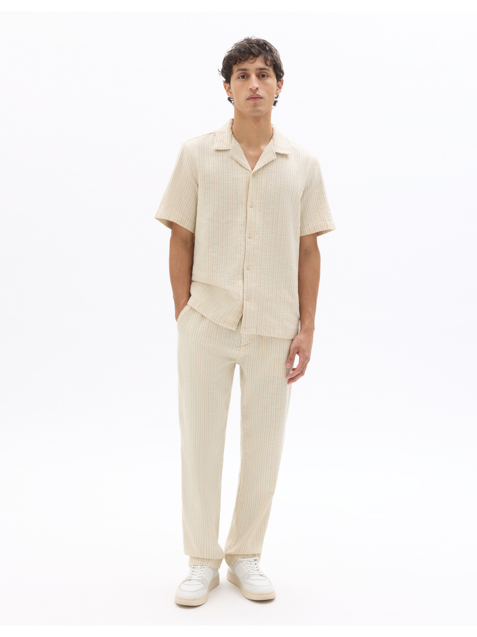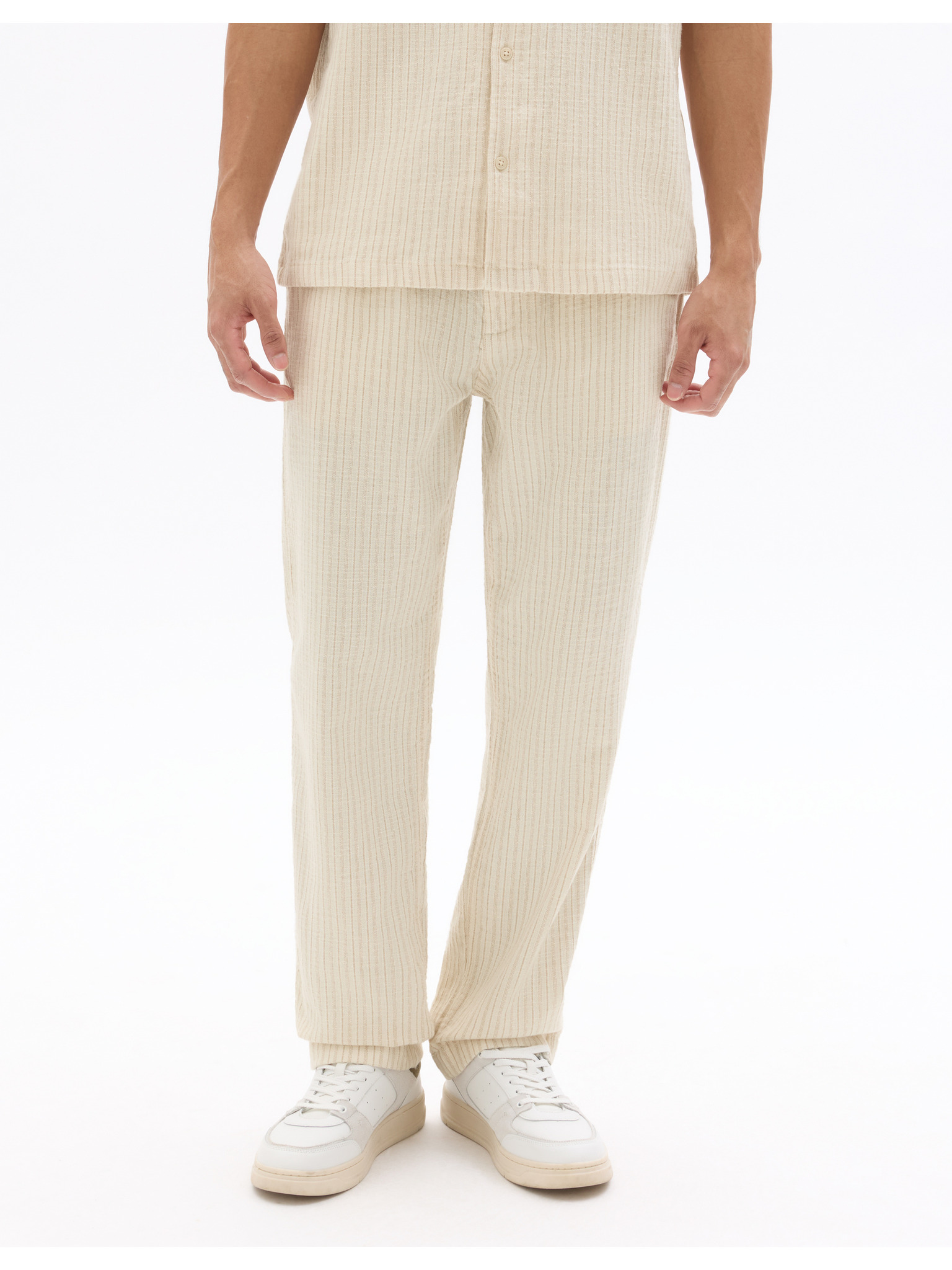 Béžové pánske nohavice zo zmesi ľanu Celio Dolinco