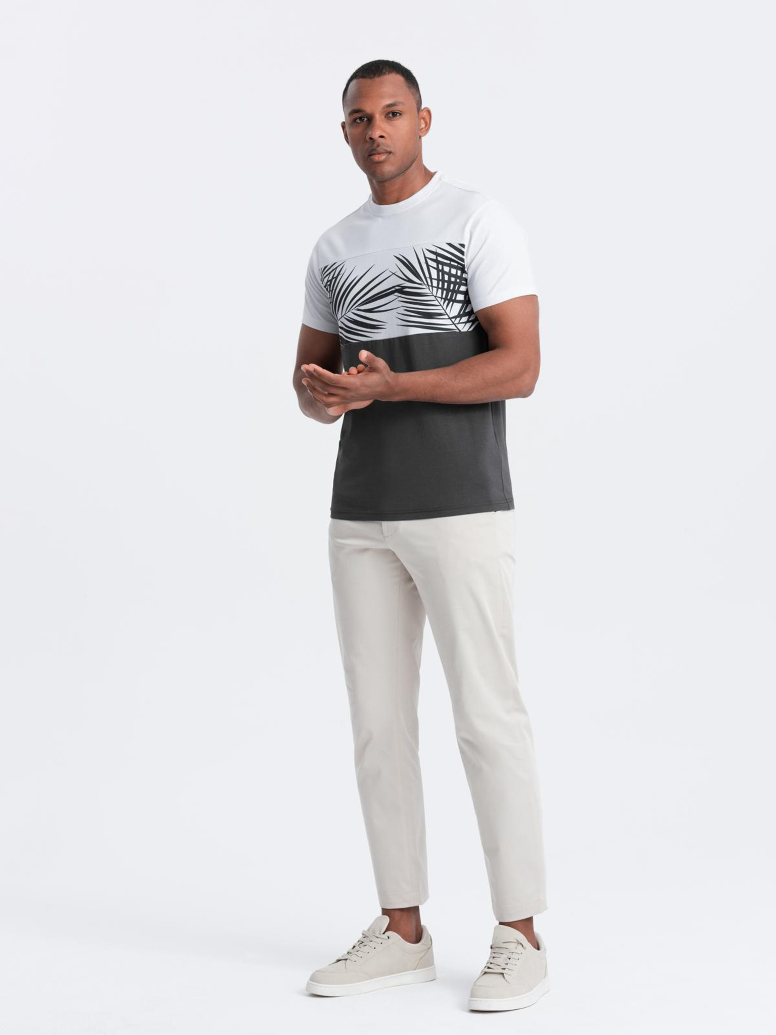 Pánska bavlnená košeľová súprava BASIC s okrúhlym výstrihom - šedozelená/biela/béžová V14 OM-TSBS-0268 Ombre Clothing