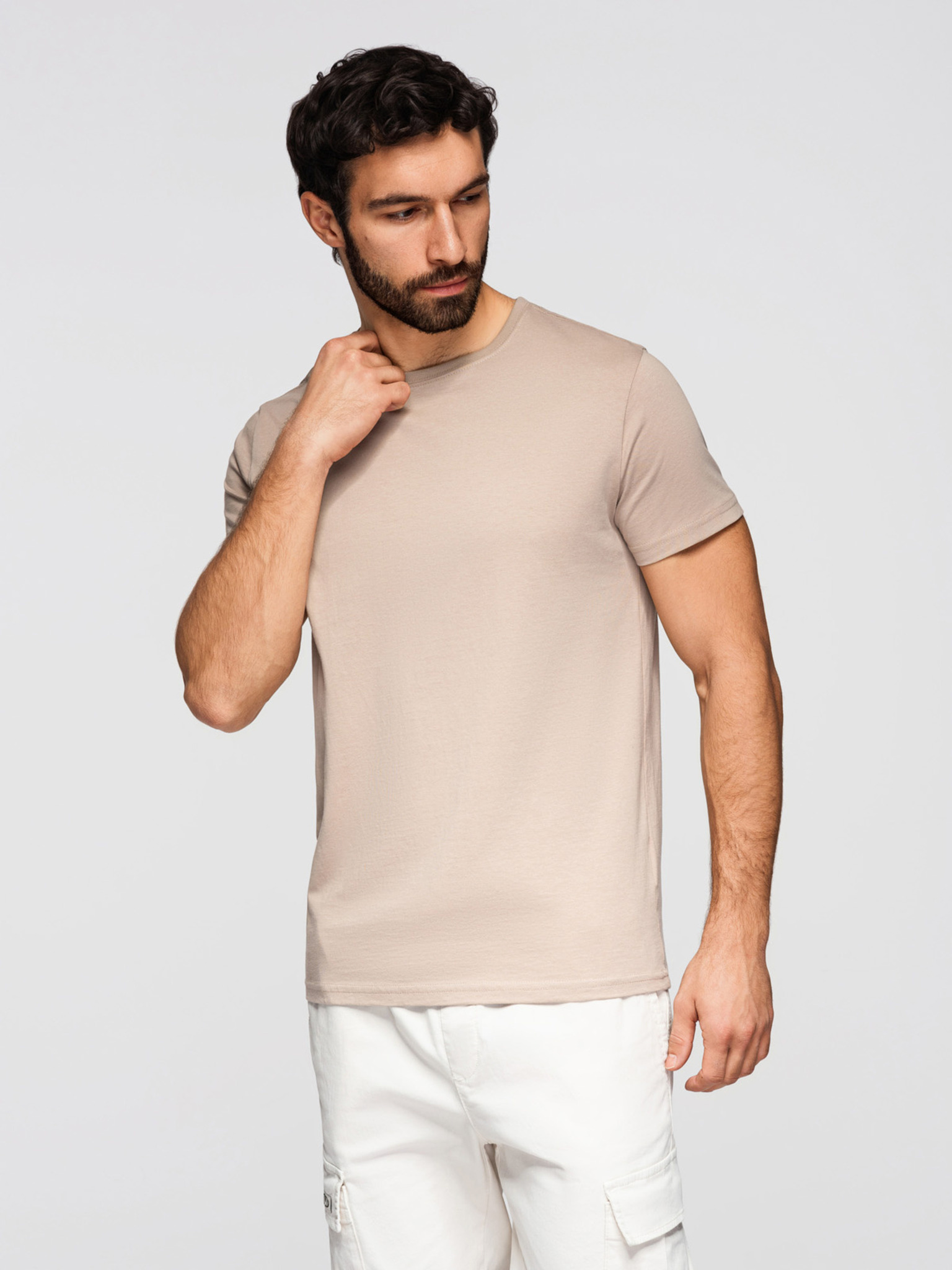 Pánska bavlnená trička BASIC s V výstrihom - biela/piesková/navy V12 OM-TSBS-0281 Ombre Clothing