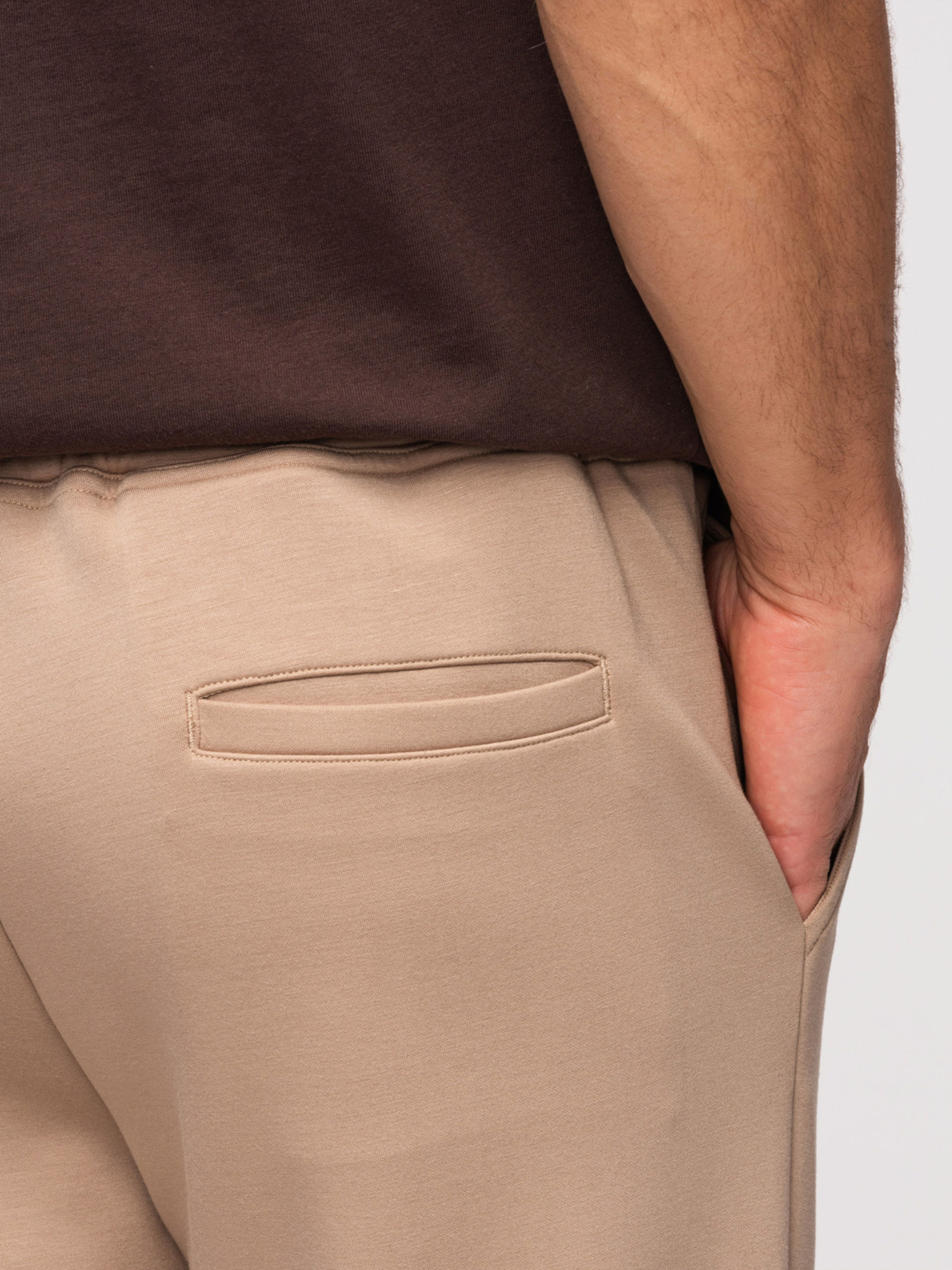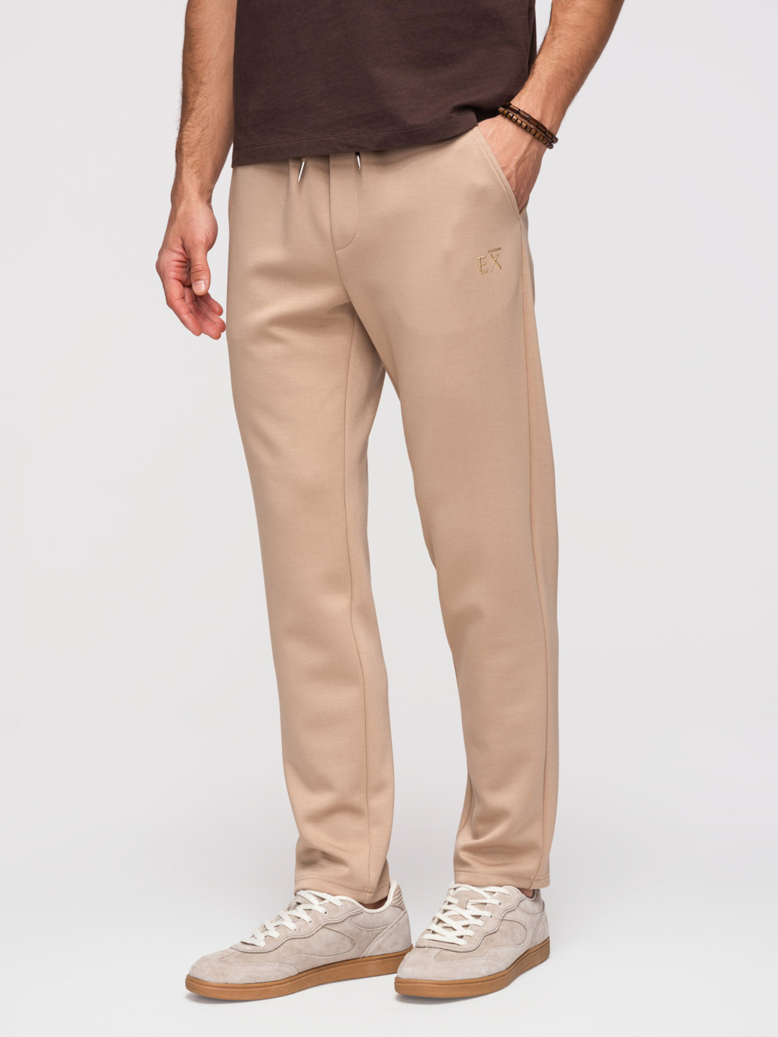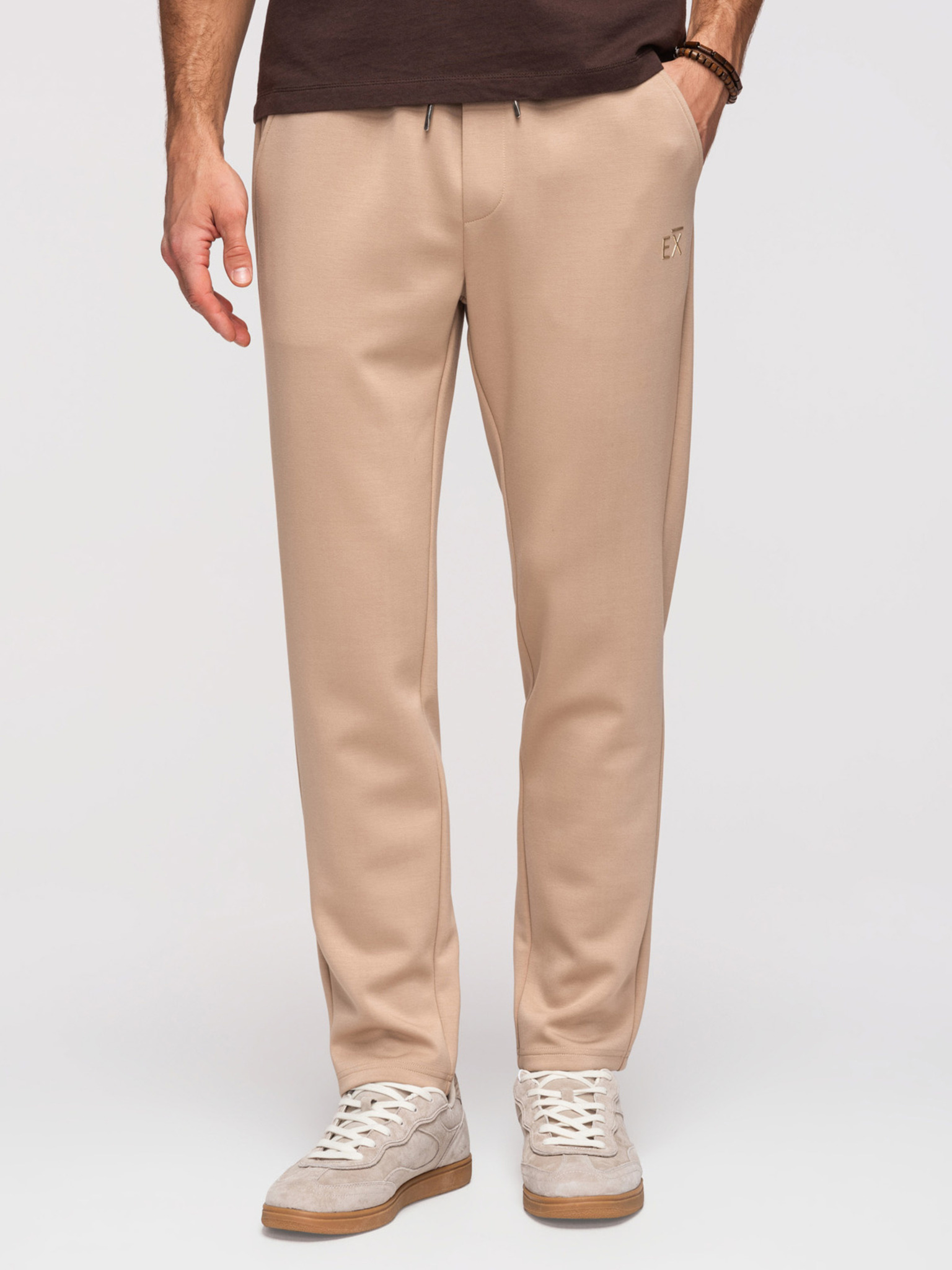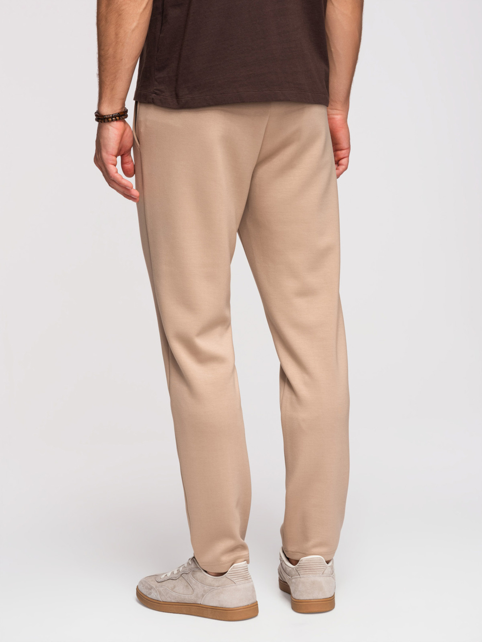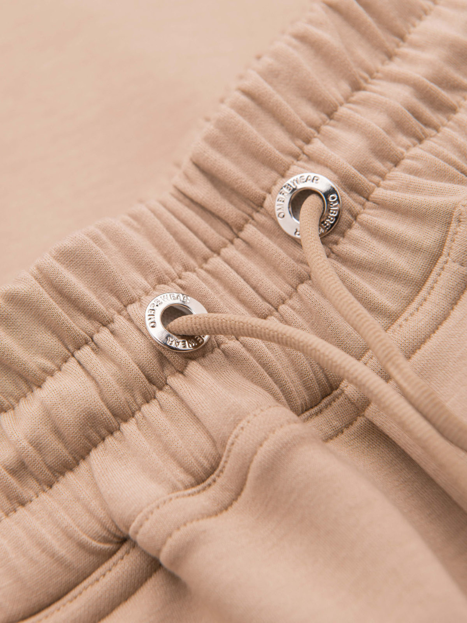 Pánske tepláky s rovnými nohavicami z hladkého úpletu - béžové V3 OM-PSBC-0221 Ombre Clothing