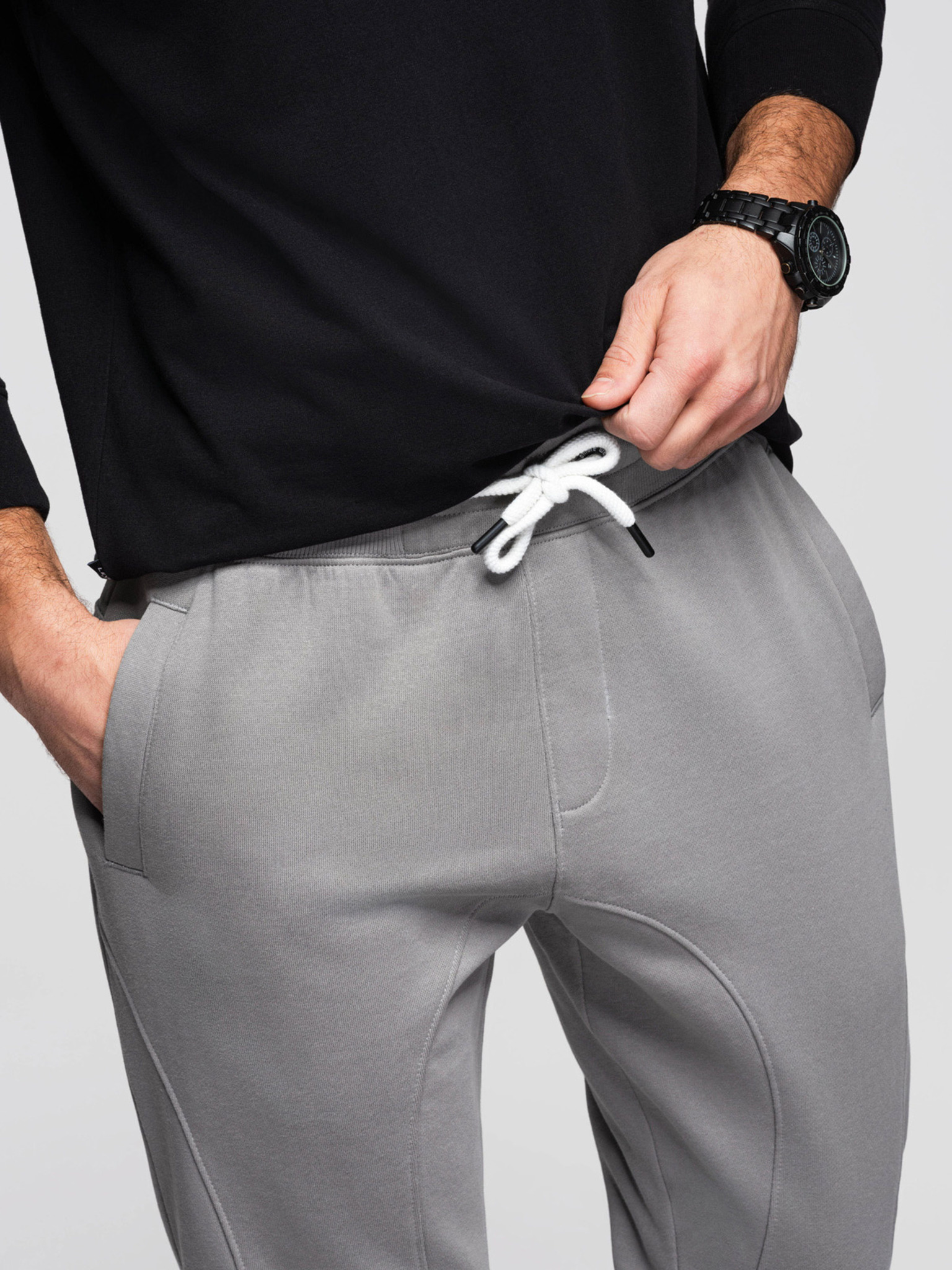 Pánske bavlnené tepláky BASIC s nepodšitou nohavicou - sivé V8 OM-PABS-0304 Ombre Clothing