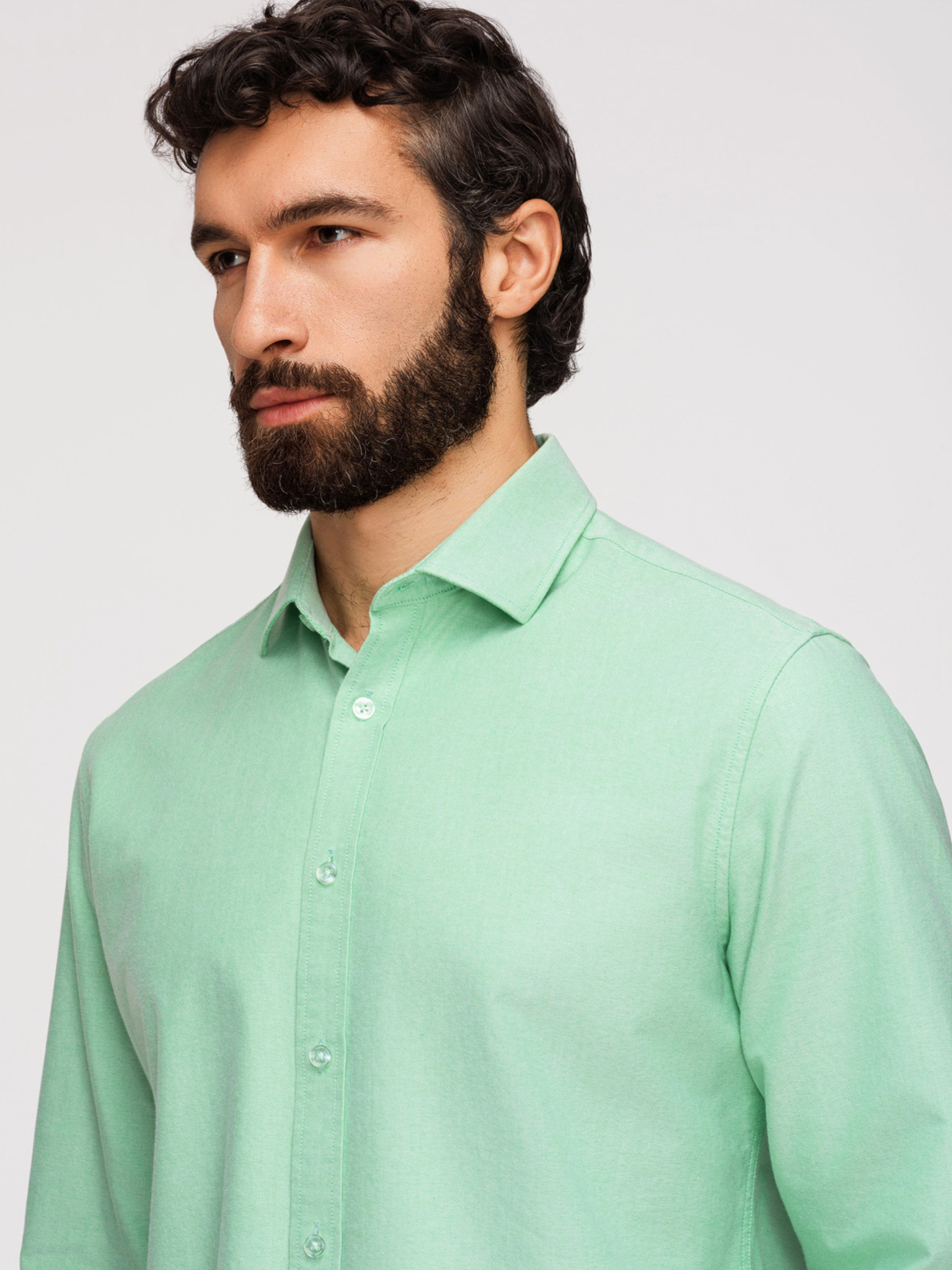 Pánska bavlnená oxfordská košeľa v pastelových farbách - mentolová Ombre Clothing