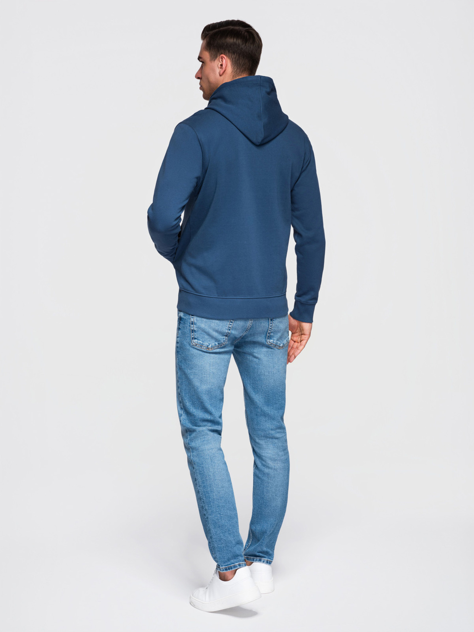 Pánska bavlnená mikina BASIC na zips s kapucňou - tmavo modrá V4 OM-SSBZ-0272 Ombre Clothing