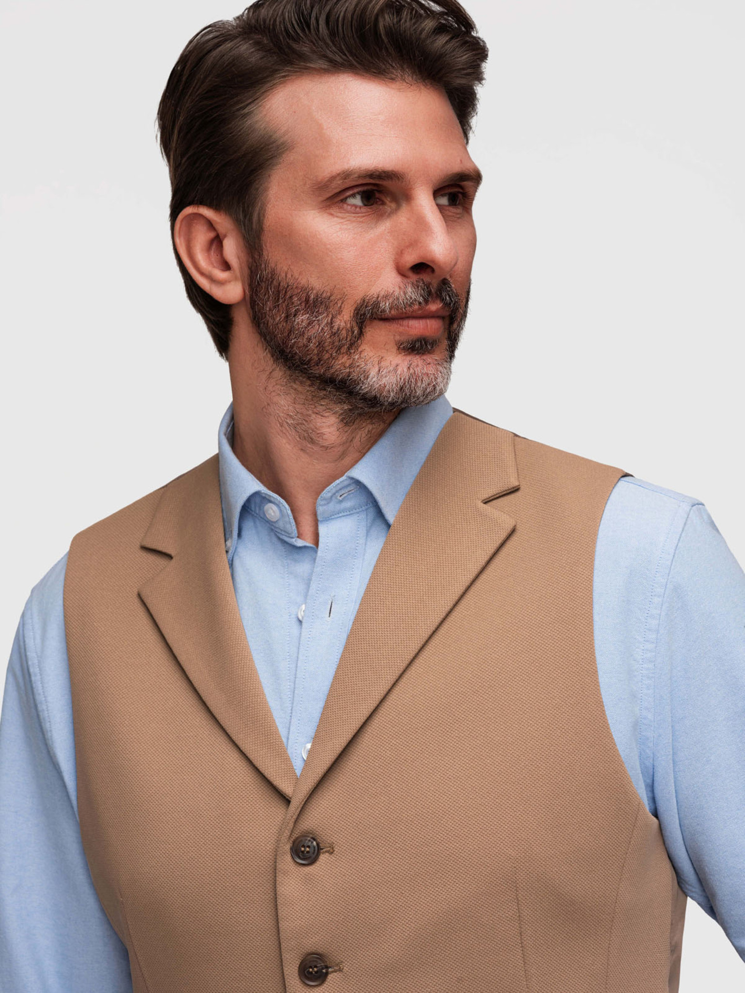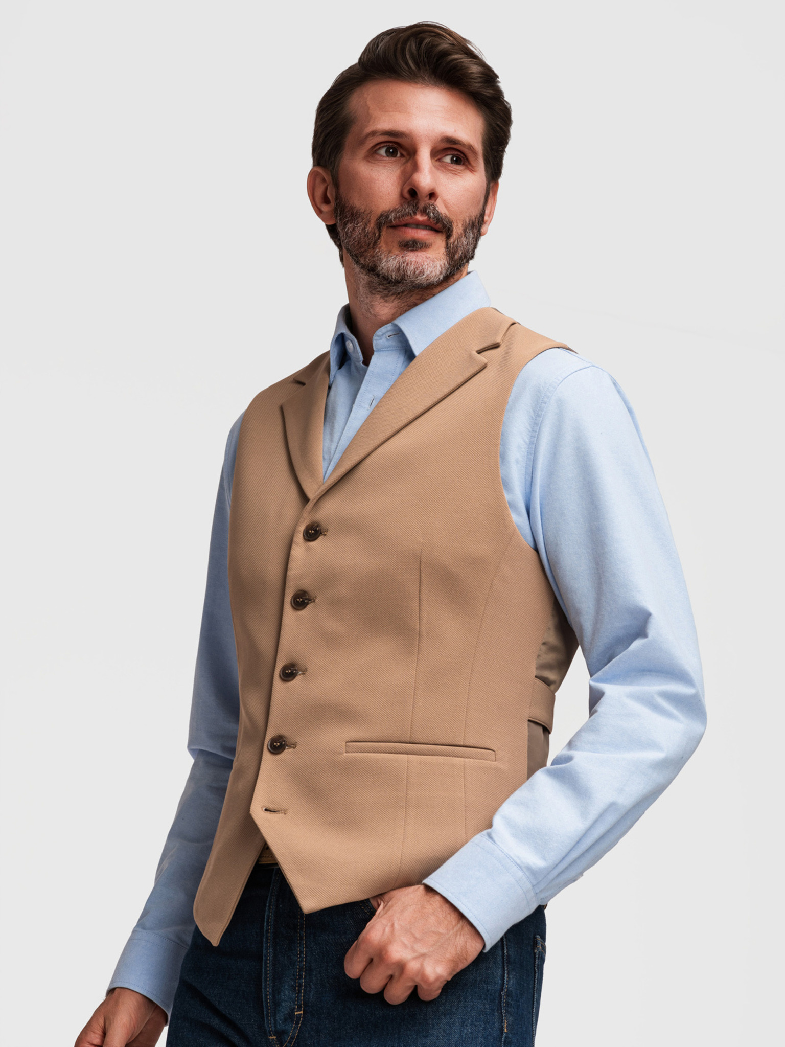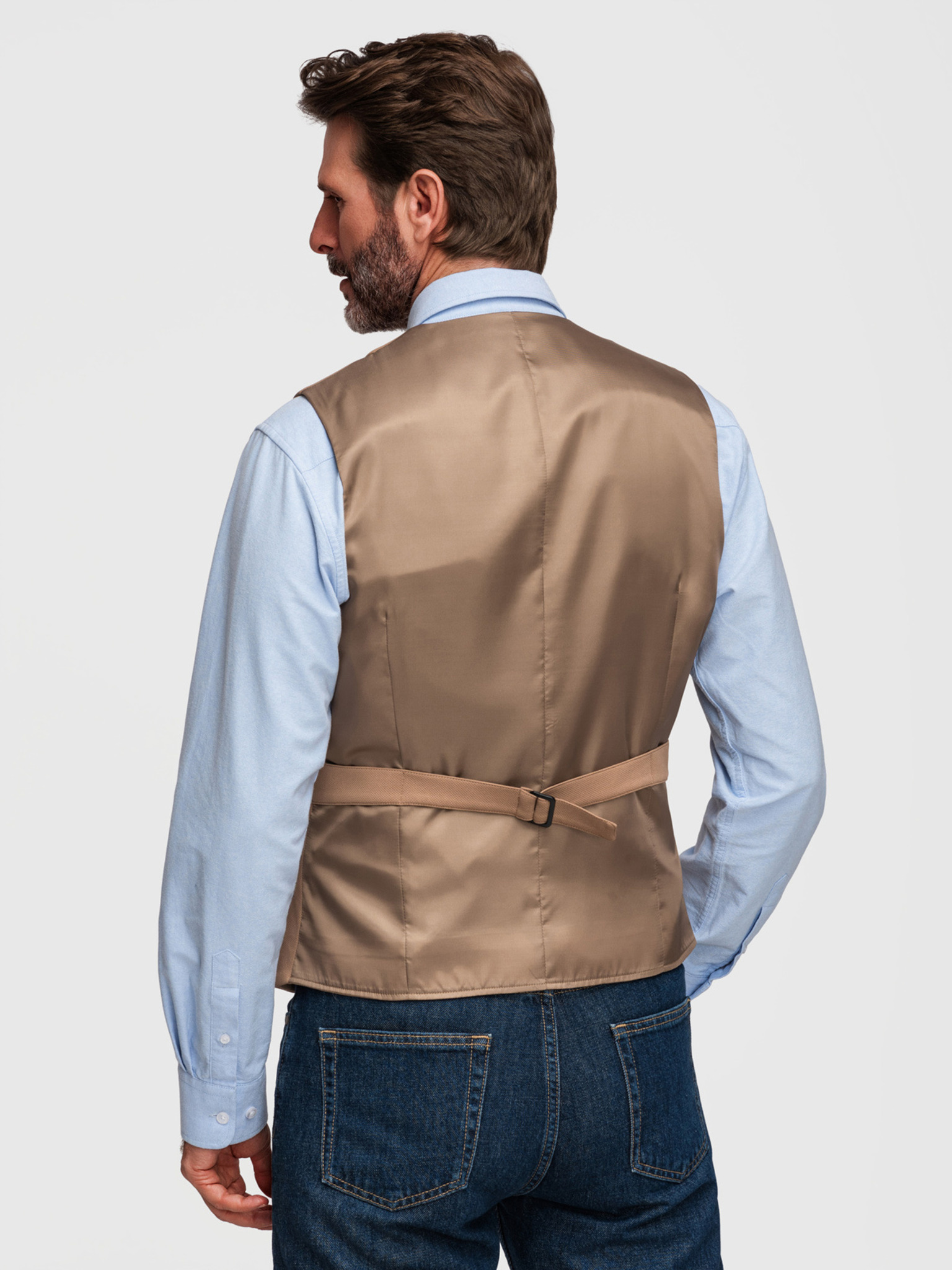 Elegantná pánska vesta s klopami - béžová V2 V66 Ombre Clothing