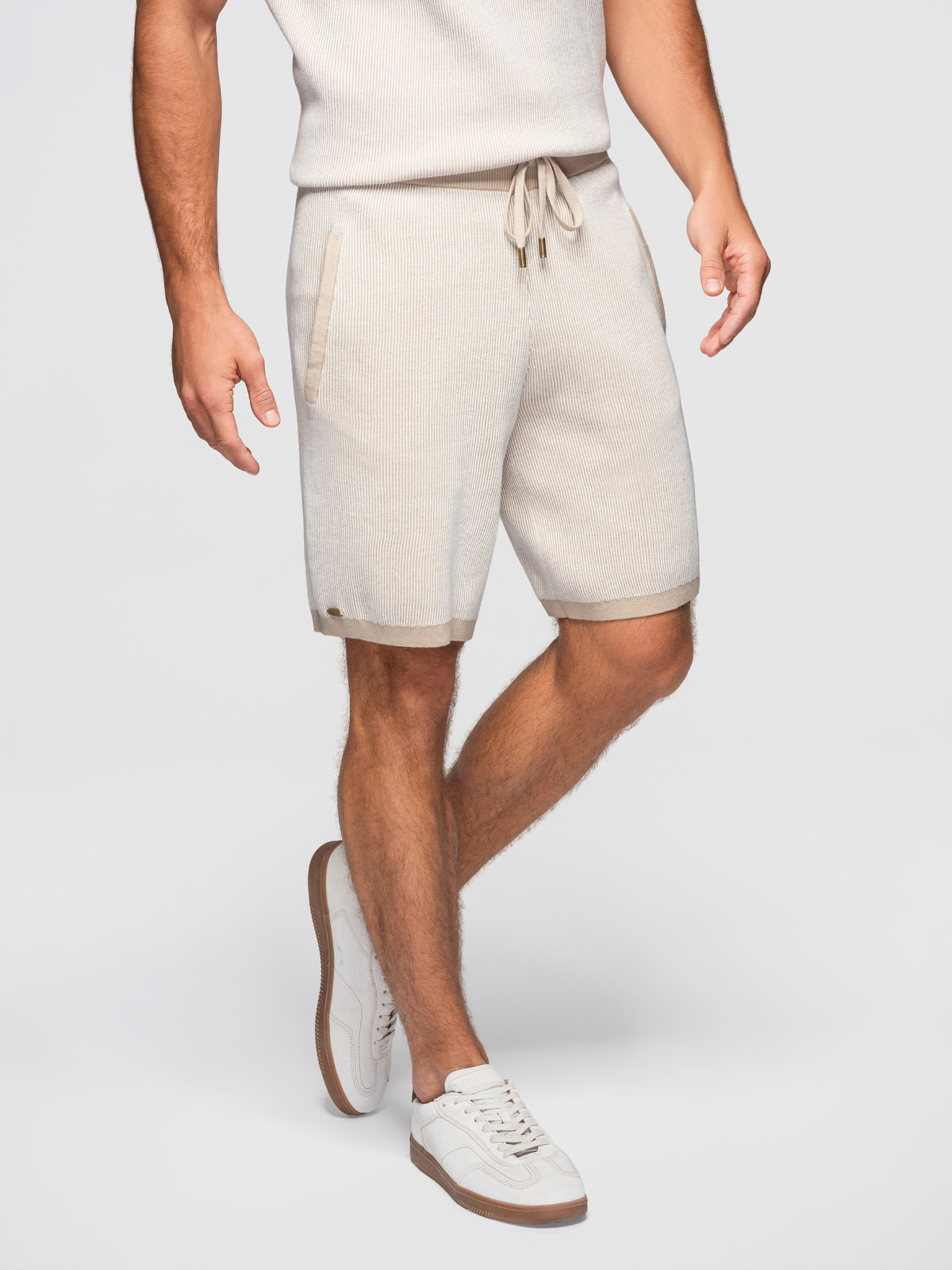 Pánske pletené šortky s nastaviteľným pásom - béžové V1 OM-SRCS-0202 Ombre Clothing