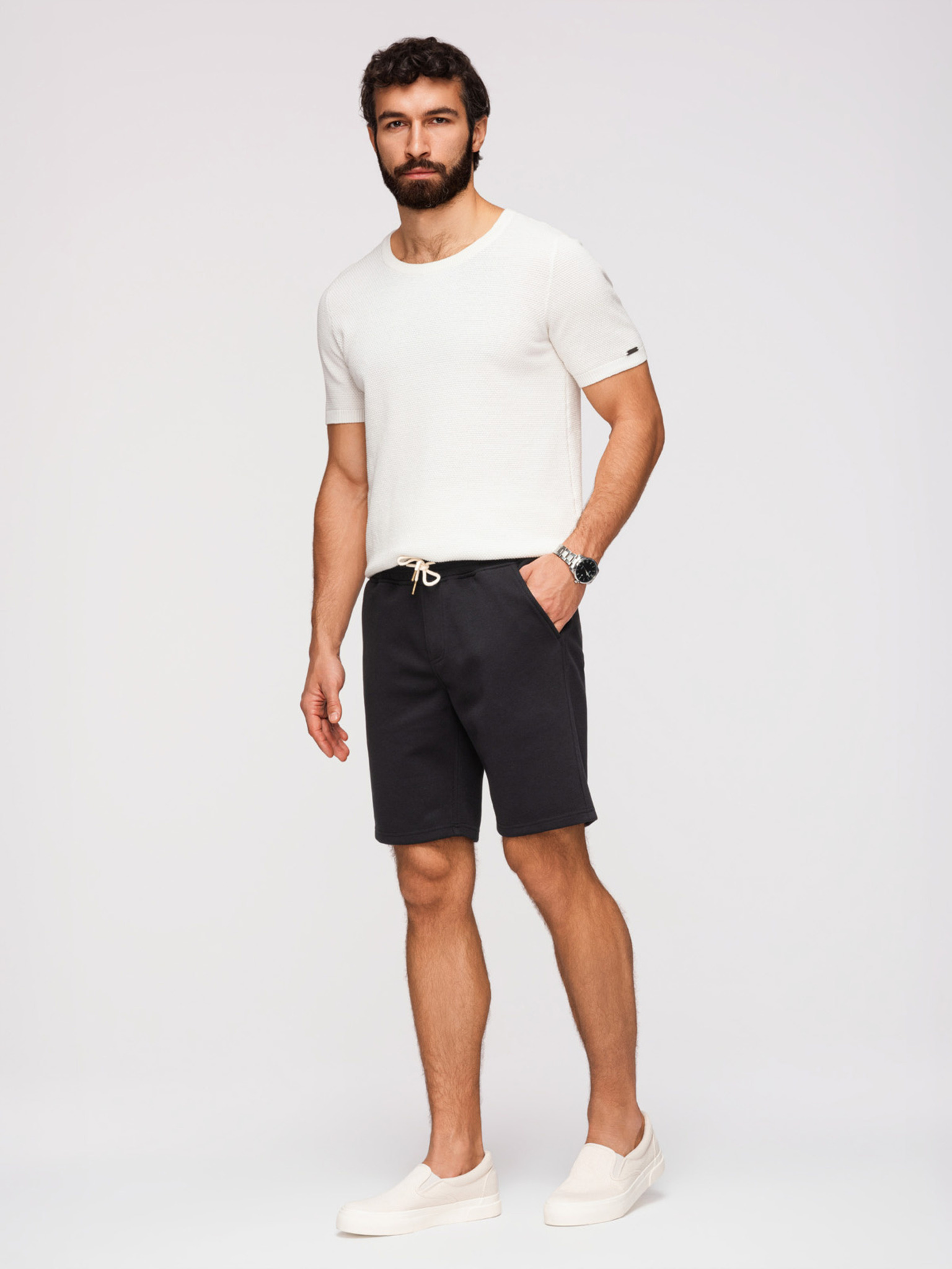 Pánske bavlnené šortky s elastickým pásom - čierne