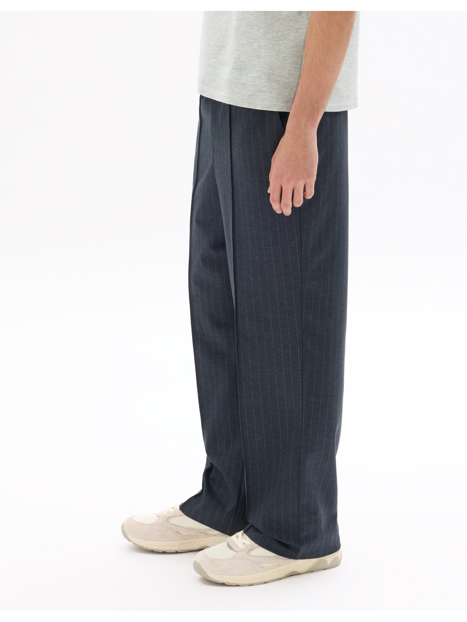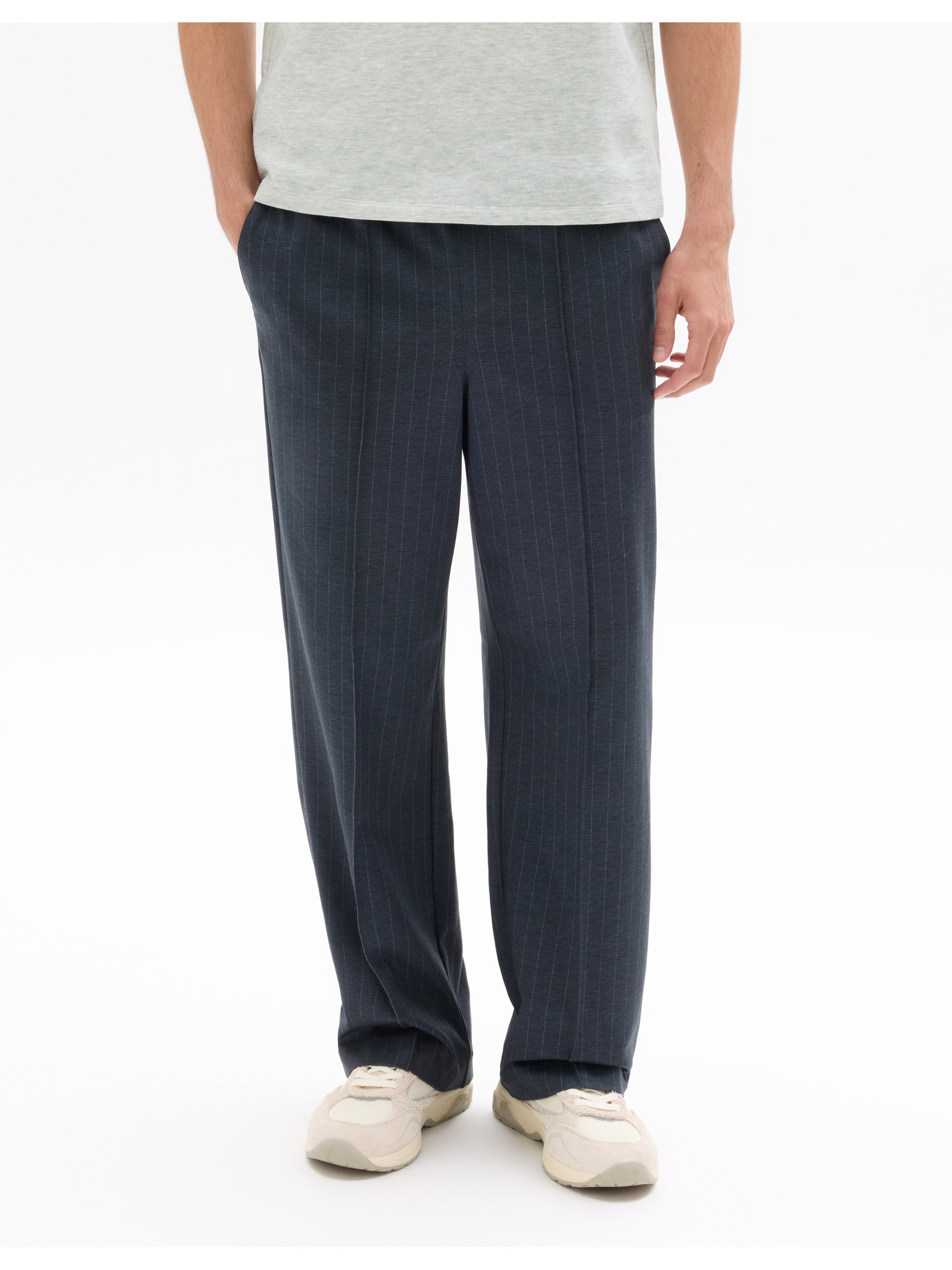Pánske nohavice z piké úpletu s nastaviteľným pásom - tmavo modré V1 OM-PACP-0283 Ombre Clothing