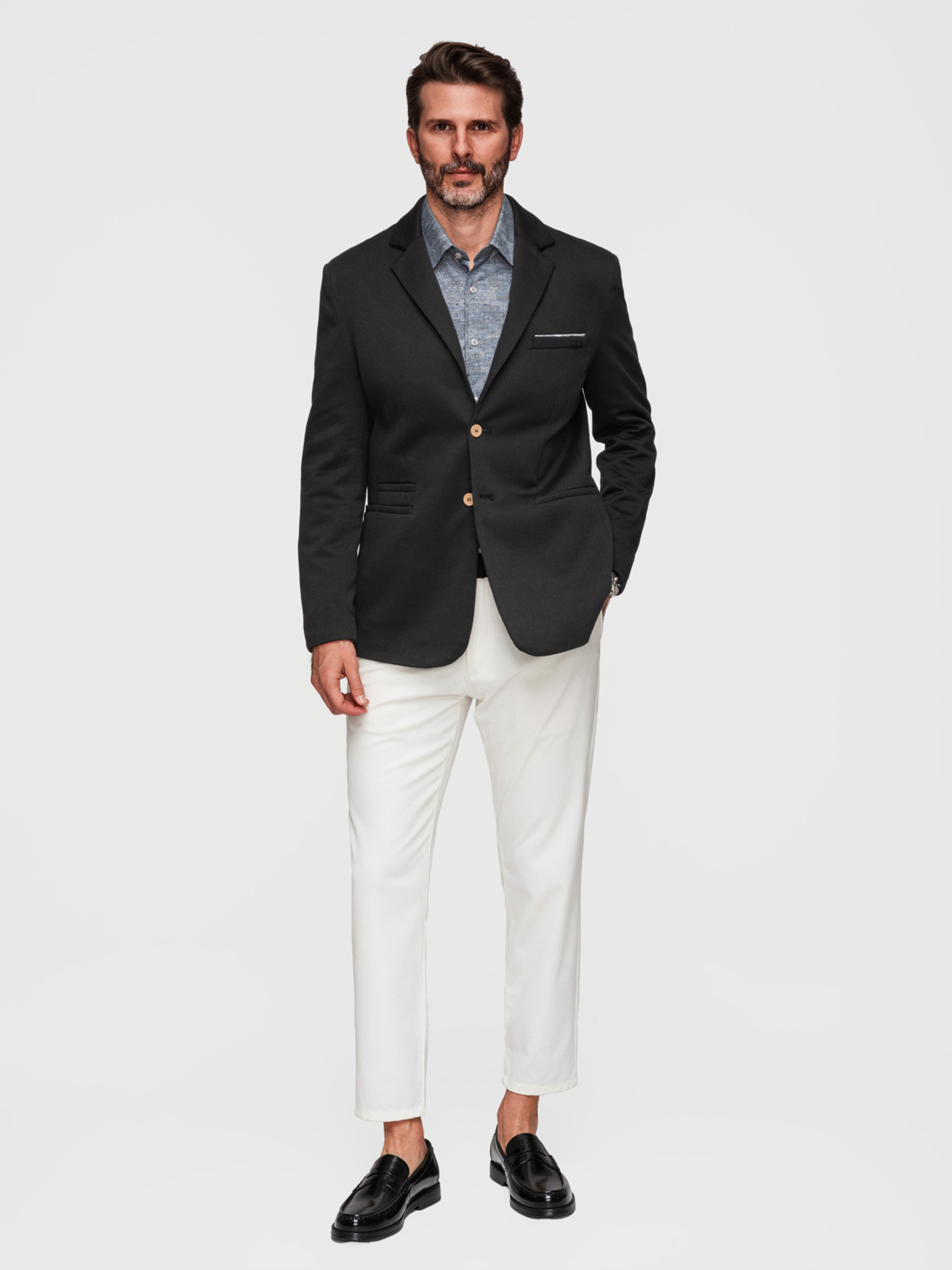 Pánske sako REGULAR strihu s plátnom - grafitová V5 M169 Ombre Clothing