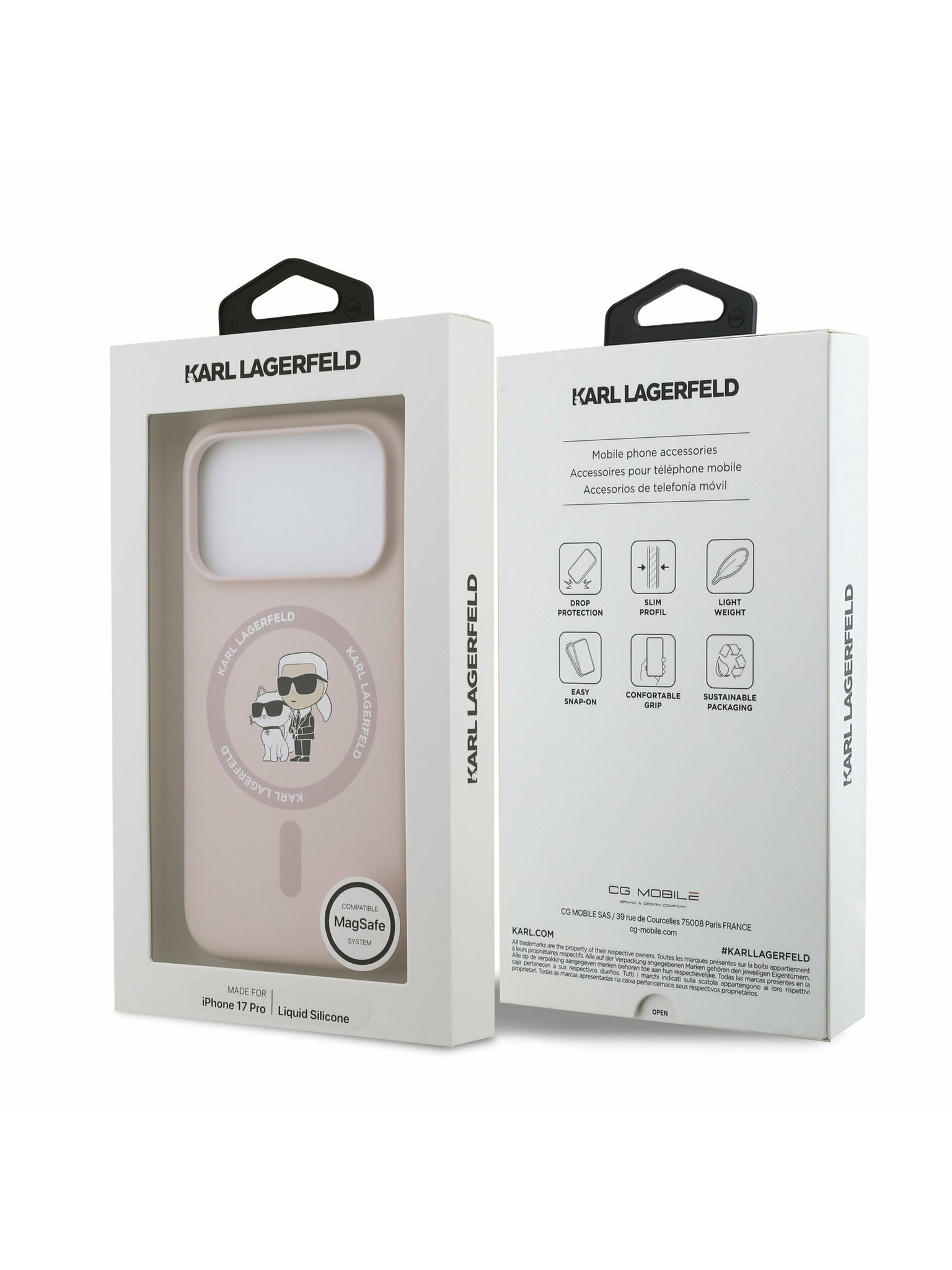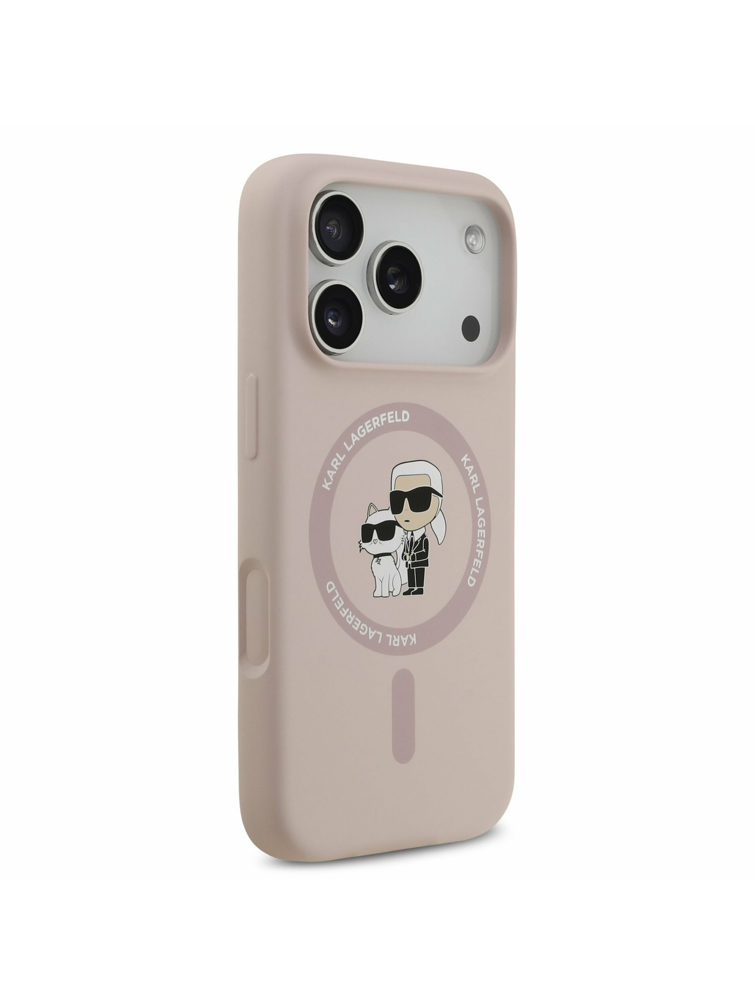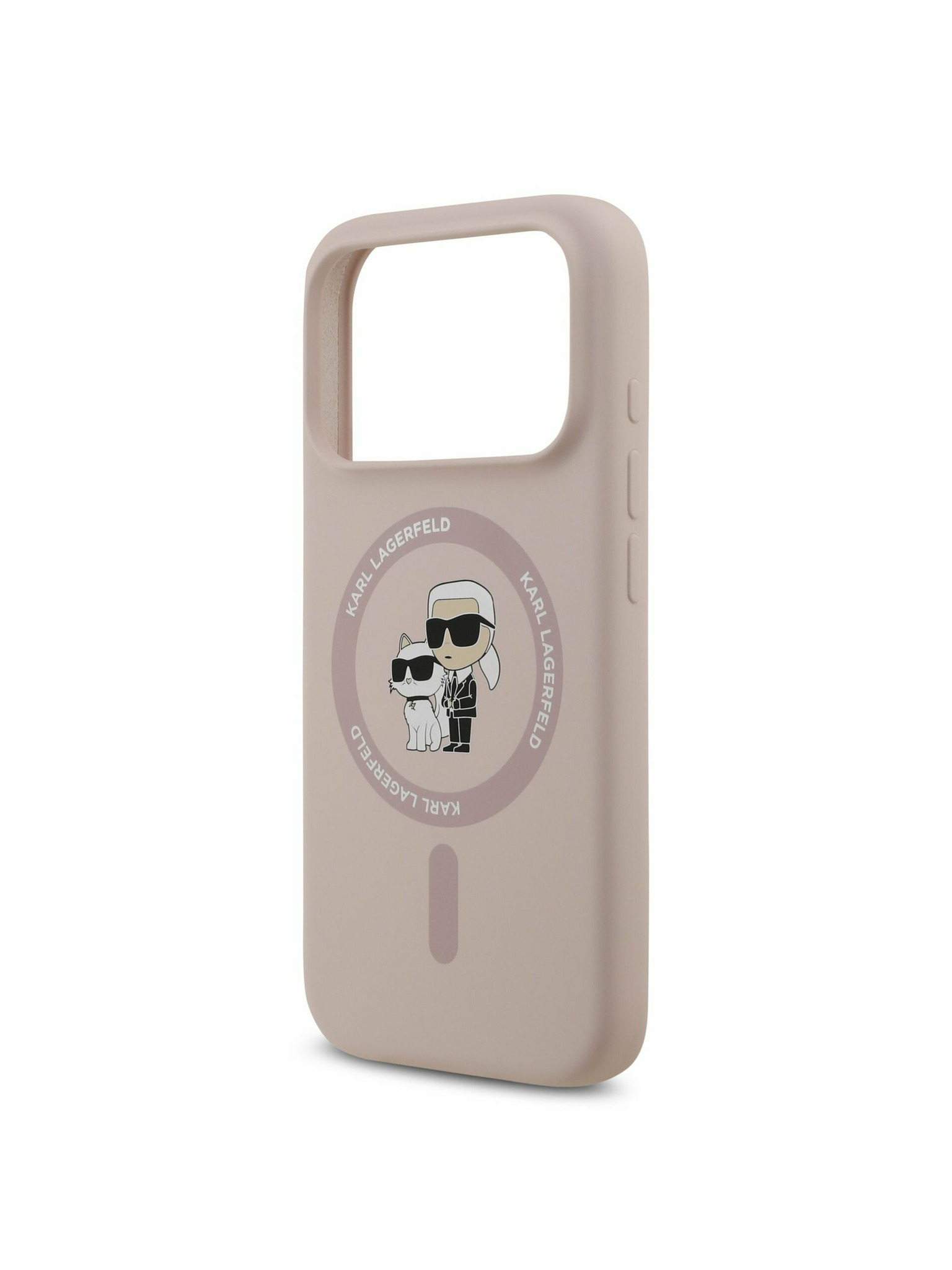 Karl Lagerfeld PU Karl and Choupette Heads Pins MagSafe Zadný Kryt pre iPhone 17 Pro Pink