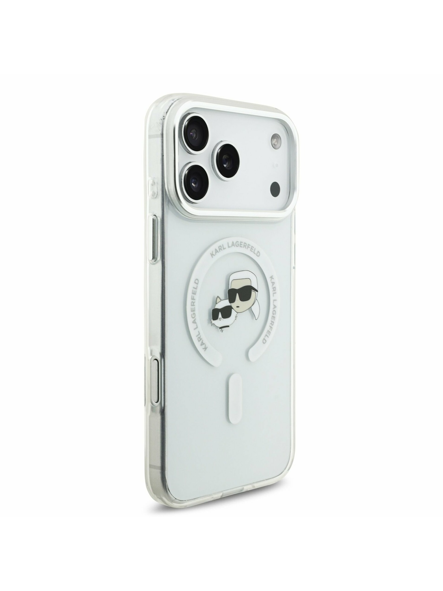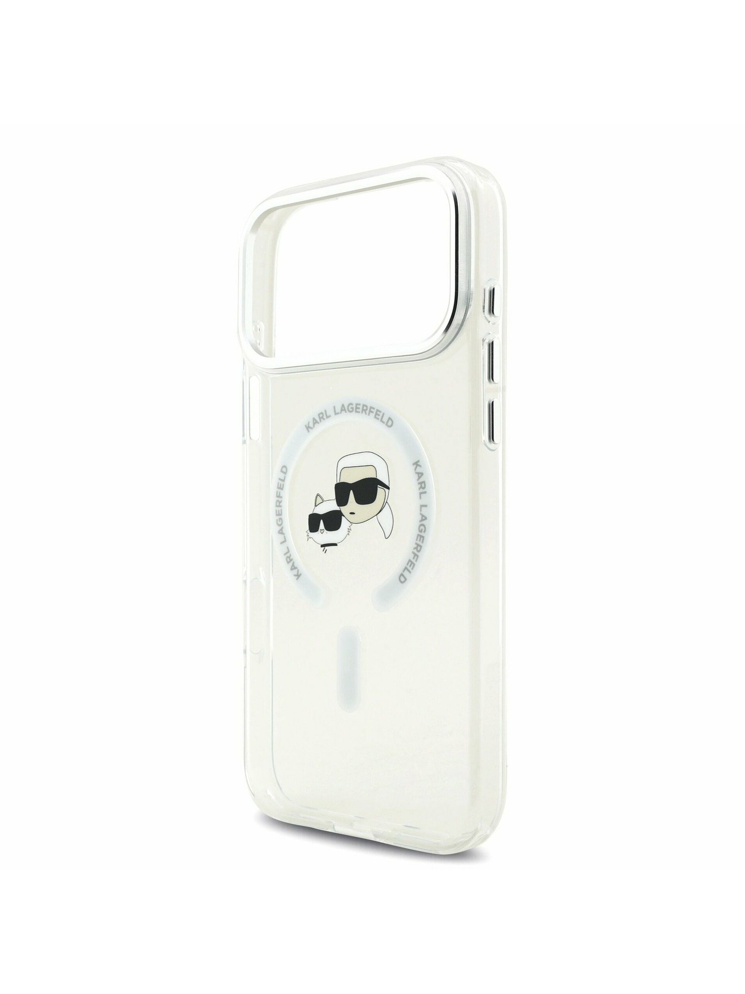 Karl Lagerfeld IML K&CH Heads Metal Frame MagSafe Zadný Kryt pre iPhone 17 Pro Transparent